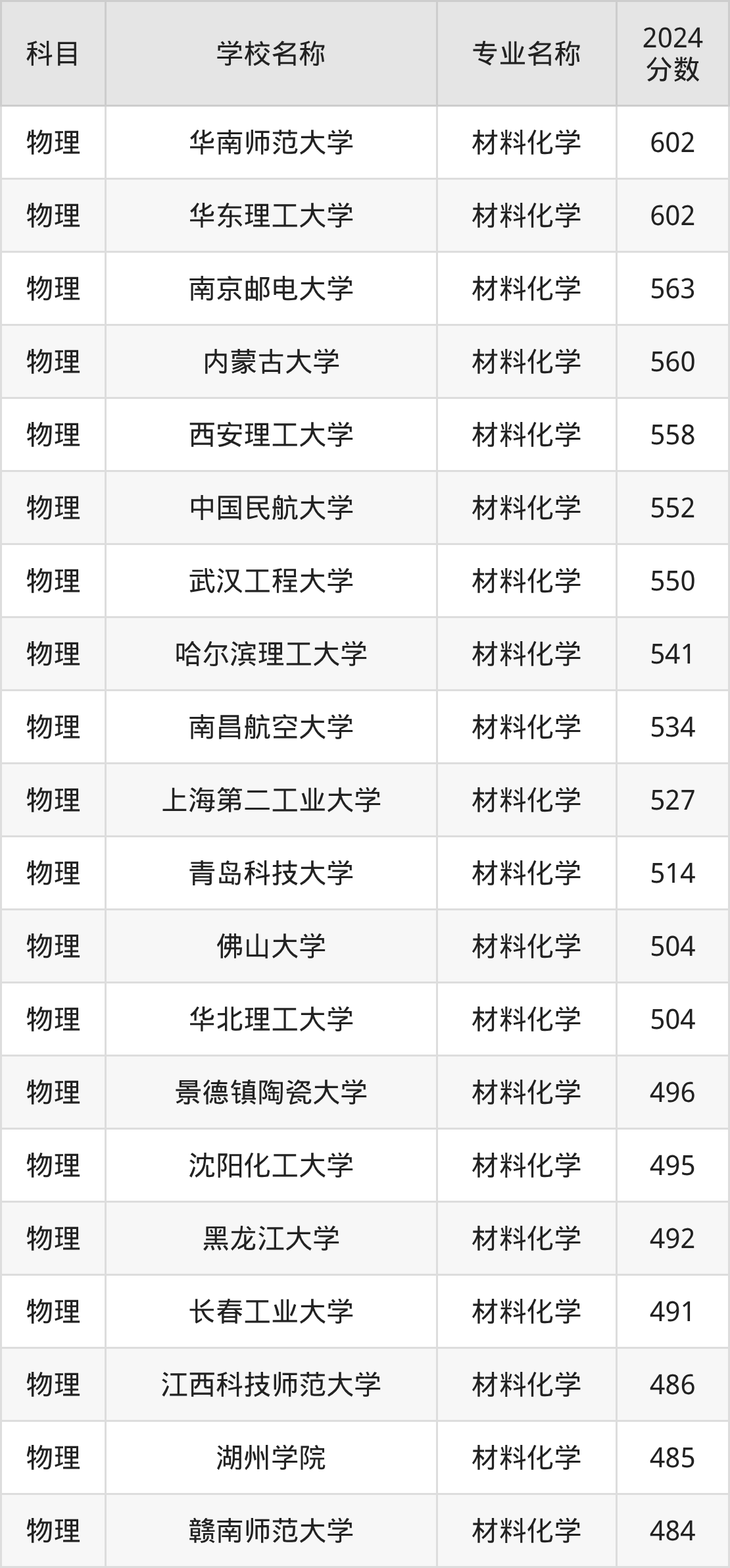 通过上文大家可以知晓,在湖南省内招材料化学专业的院校数量较少,所以下文将为2026届高考生继续展示:省外大学的材料化学专业2024年在湖南高考的录取情况,包含华南师范大学、华东理工大学、南京邮电大学、内蒙古大学、西安理工大学。