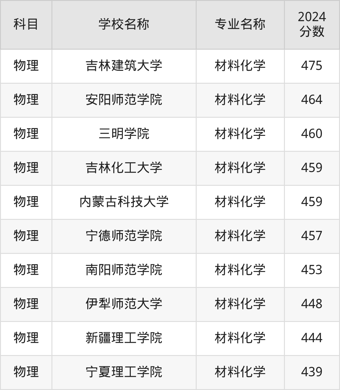 | 湖南人文科技学院 | 材料化学 | 452 |