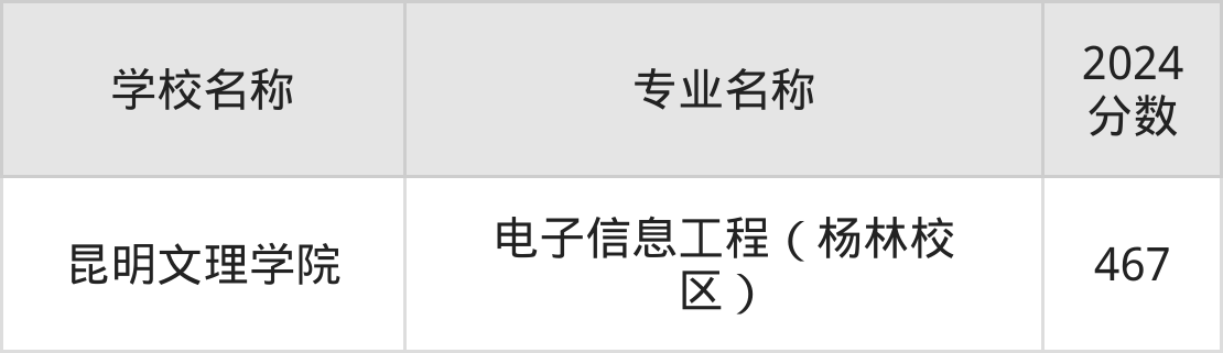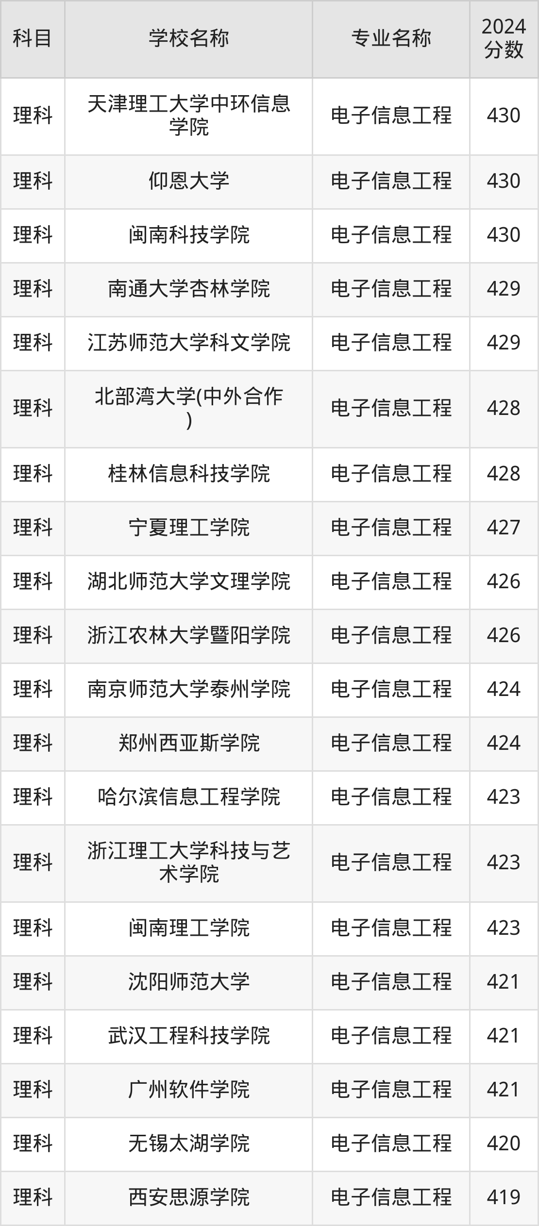 | 昆明文理学院 | 电子信息工程( 杨林校区) | 420 |