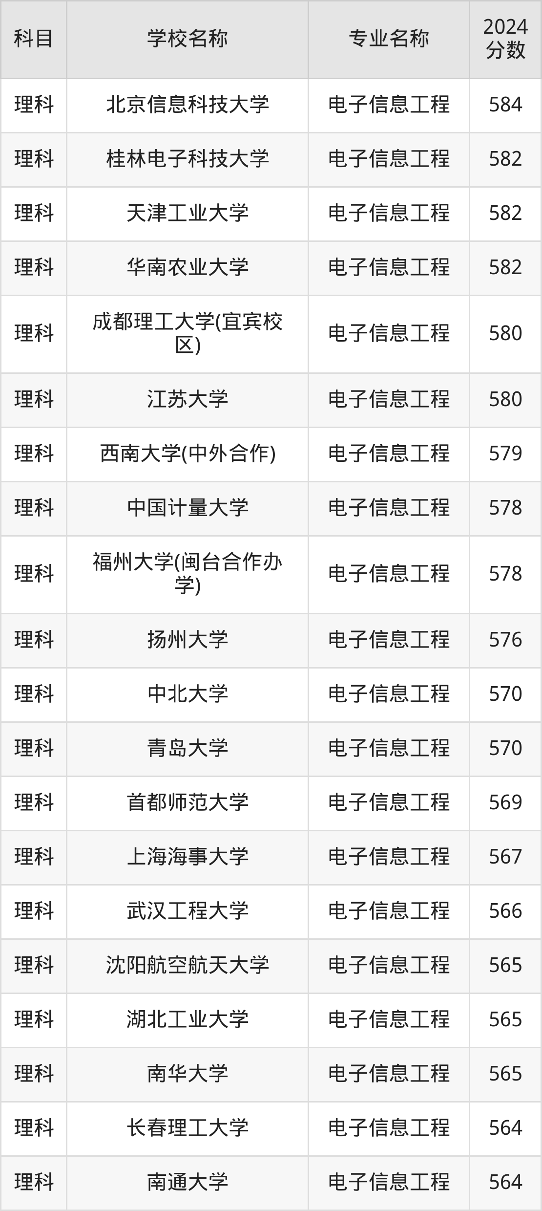 | 昆明理工大学 | 电子信息工程( 呈贡校区) | 575 |