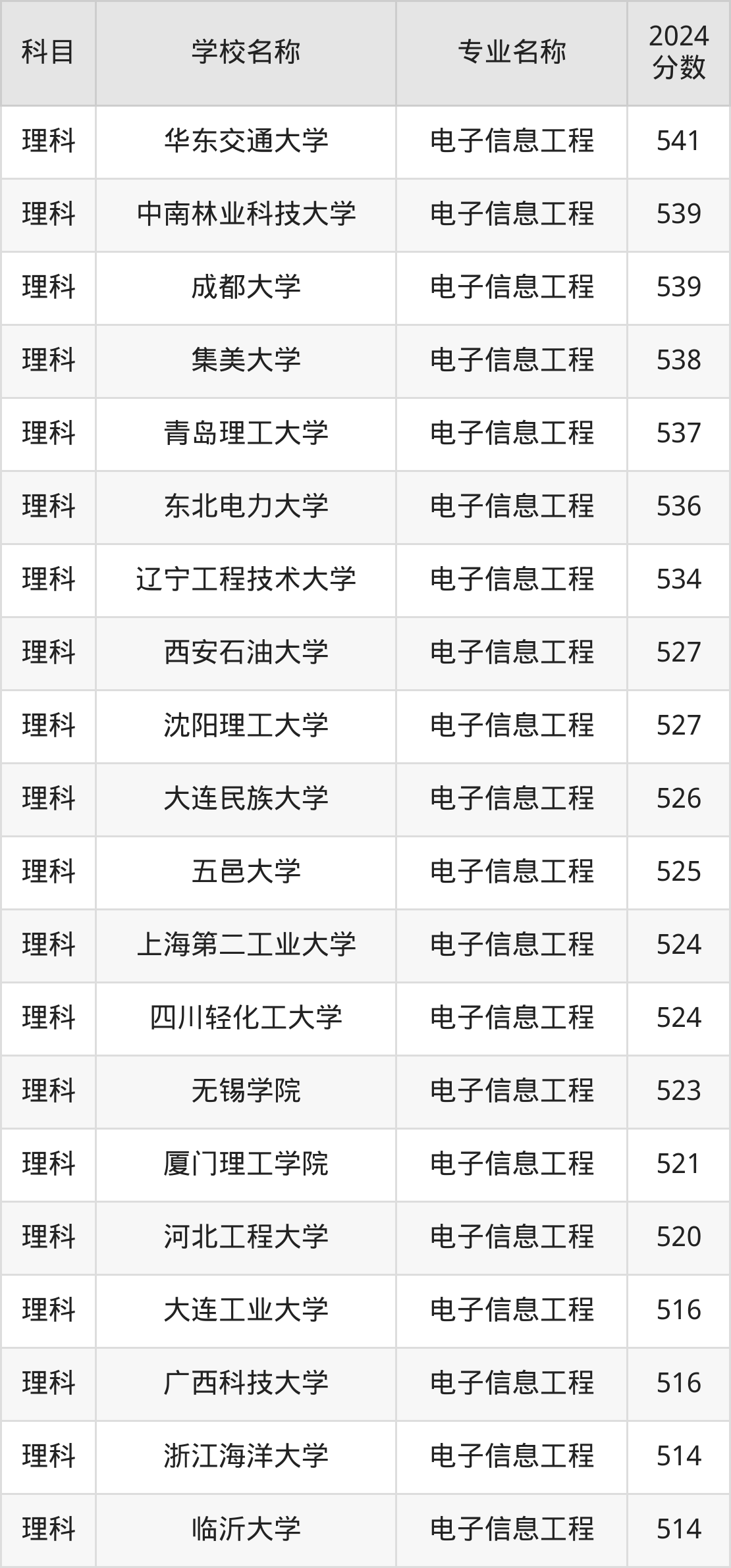 下文将为大家展示云南省大学电子信息工程专业2024年在云南高考的最低录取分数线!