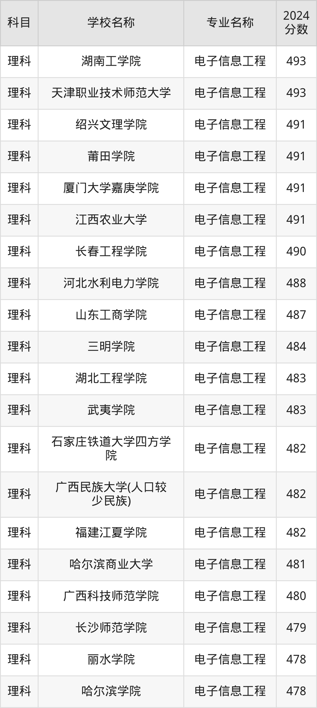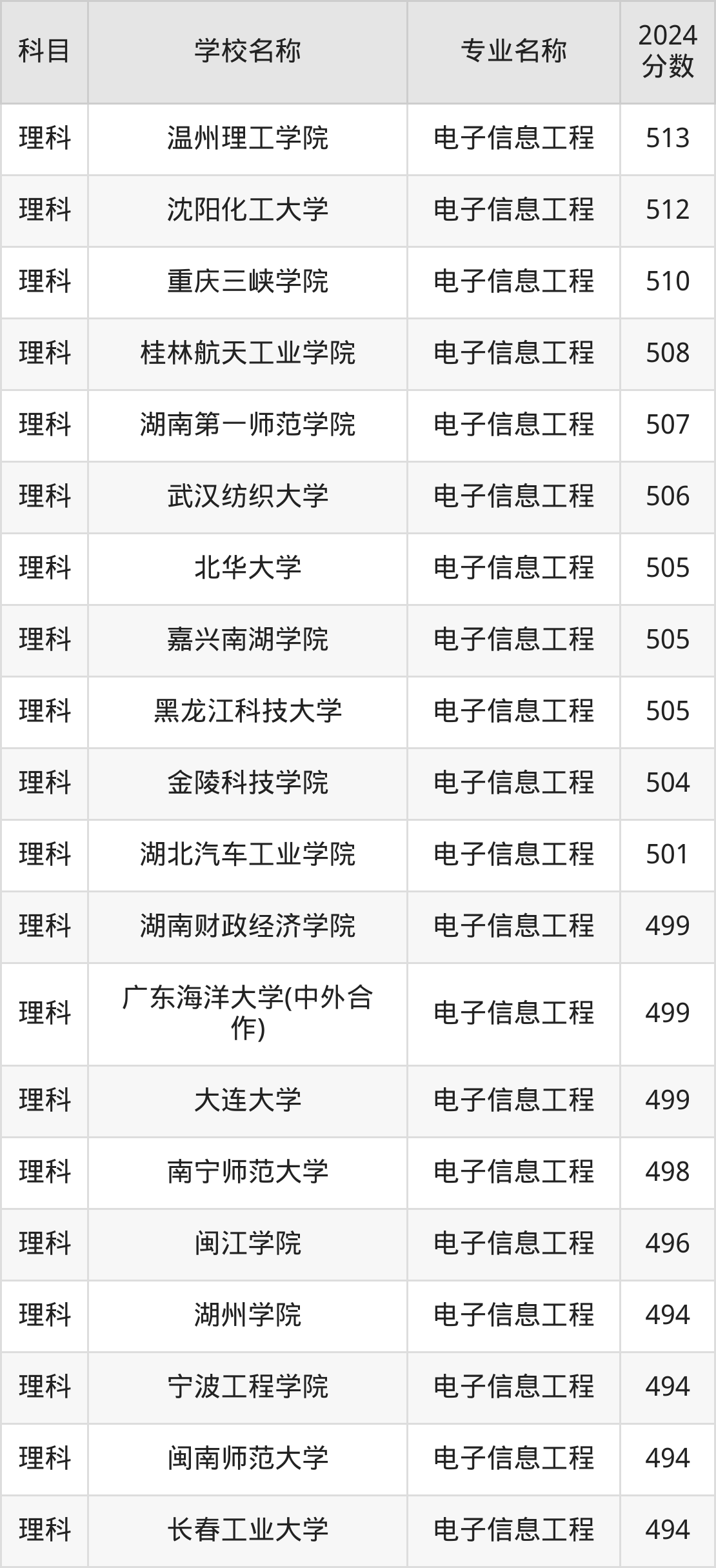 | 西南林业大学 | 电子信息工程( 校本部) | 496 |