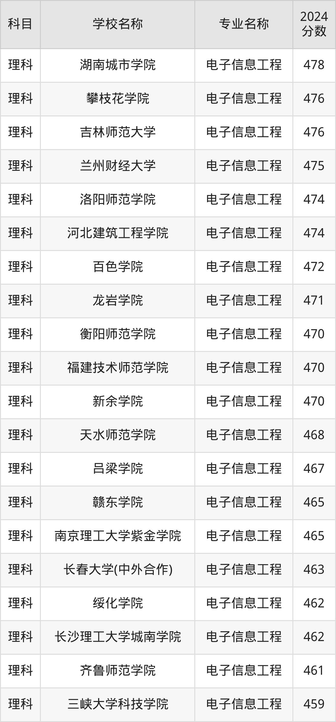| 曲靖师范学院 | 电子信息工程( 校本部) | 473 |