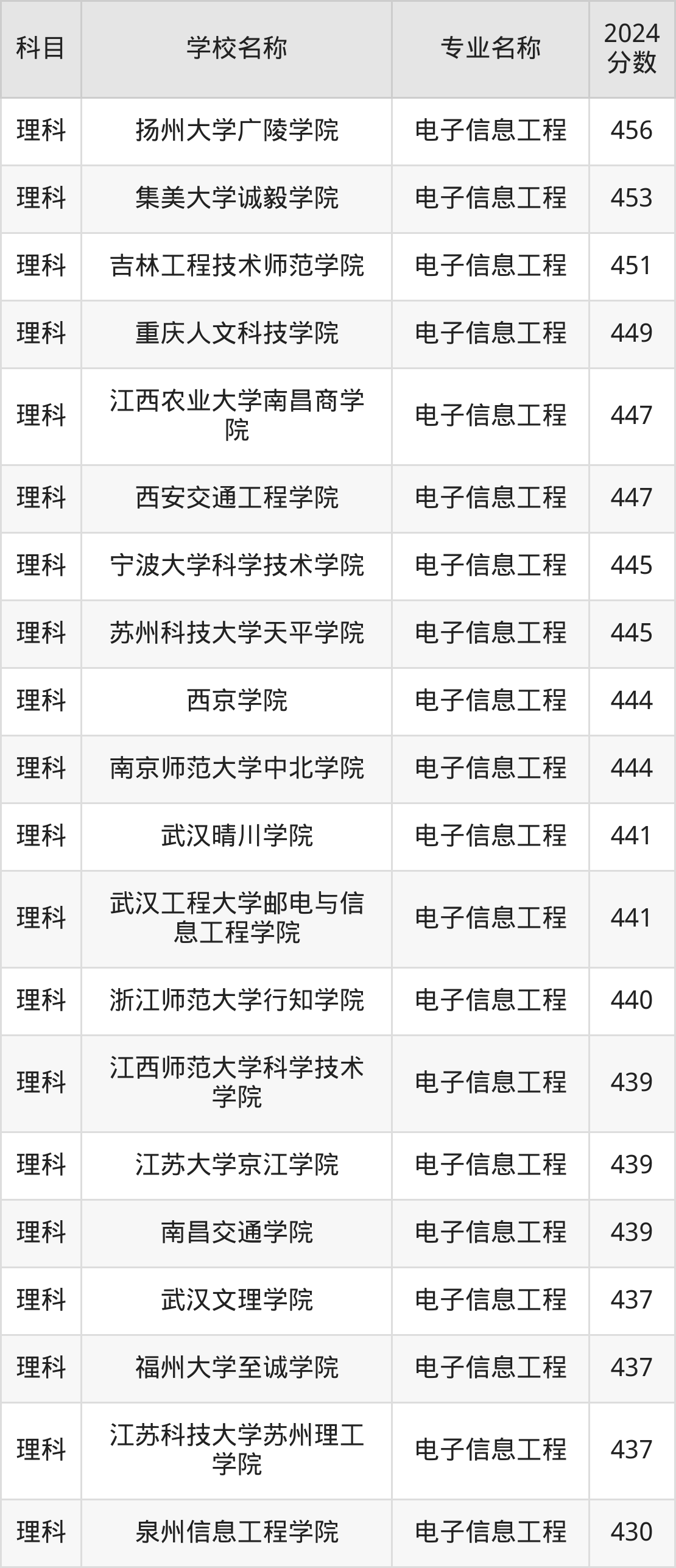 | 滇池学院 | 电子信息工程( 杨林校区) | 432 |