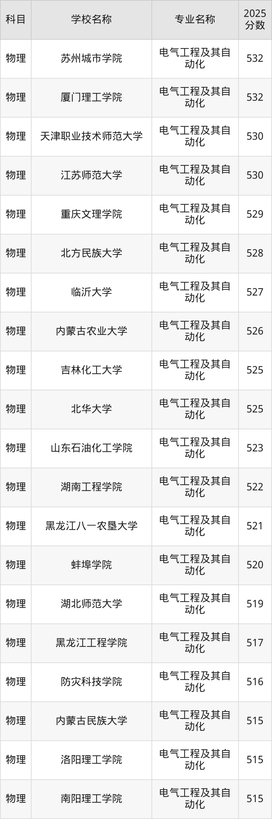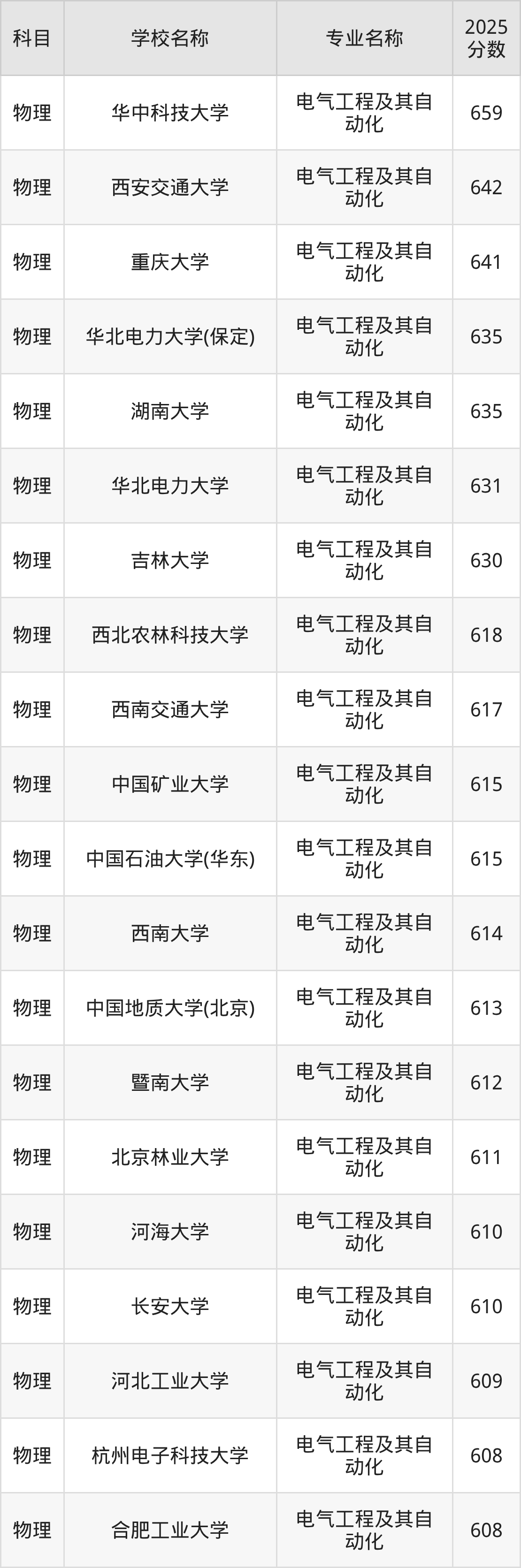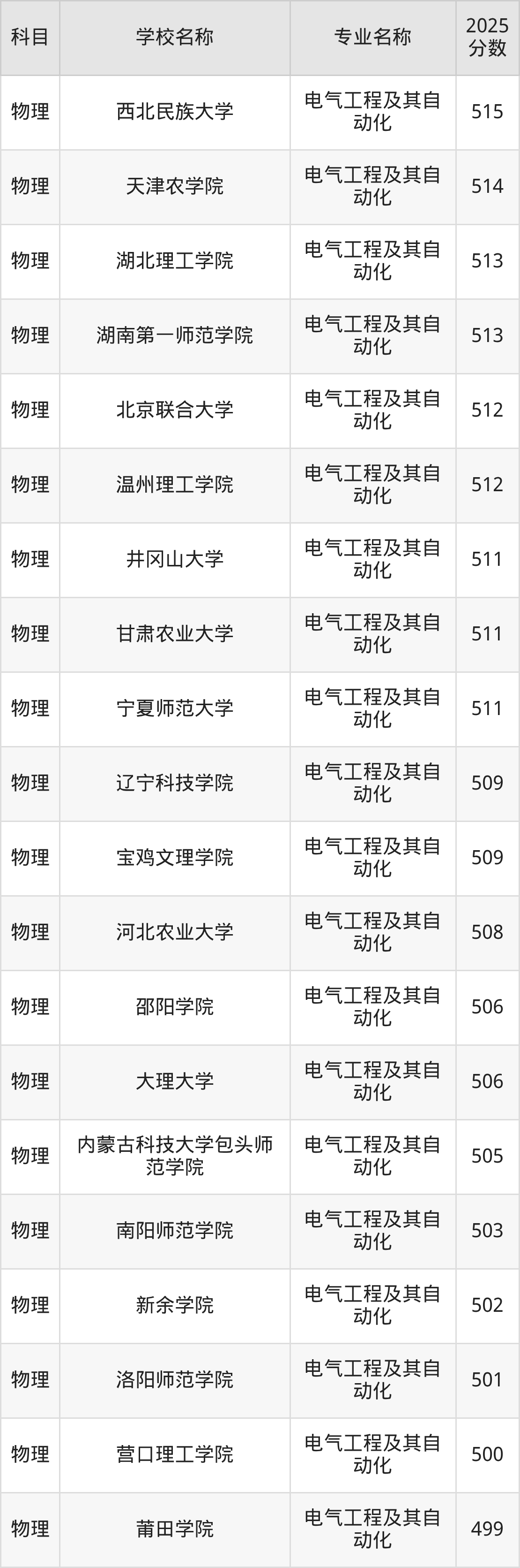 下文将为大家展示山西省大学电气工程及其自动化专业2025年在山西高考的最低录取分数线!