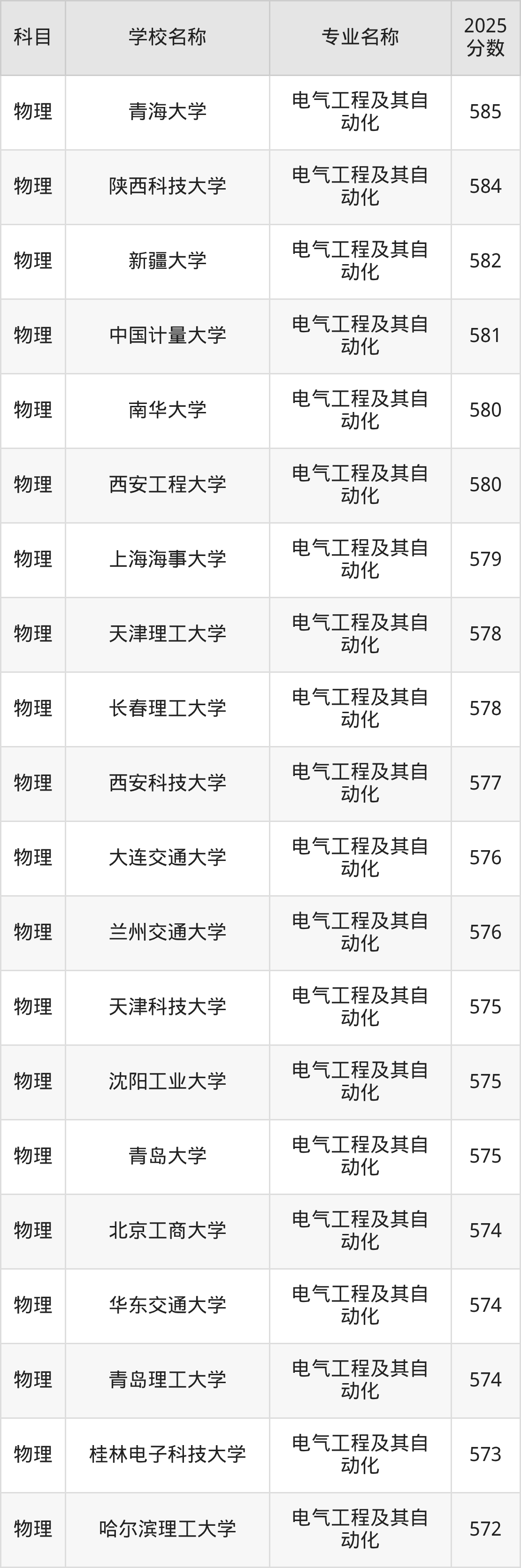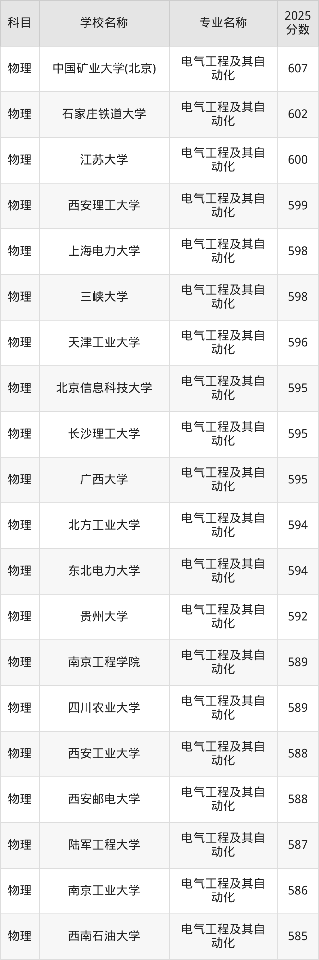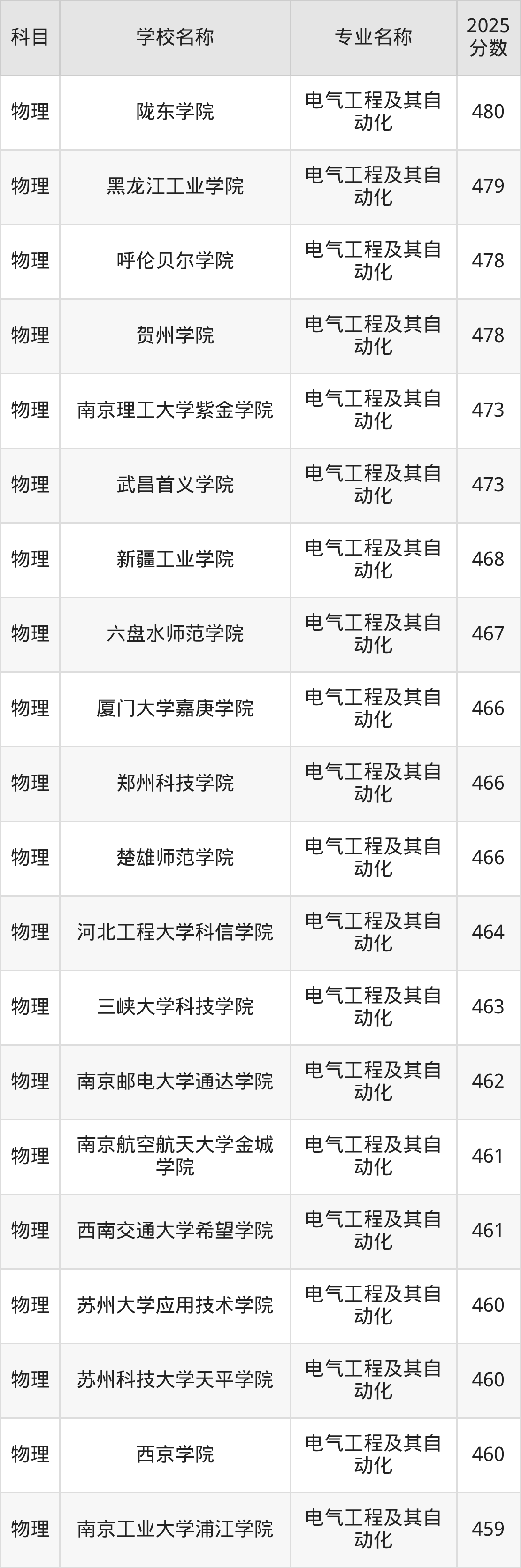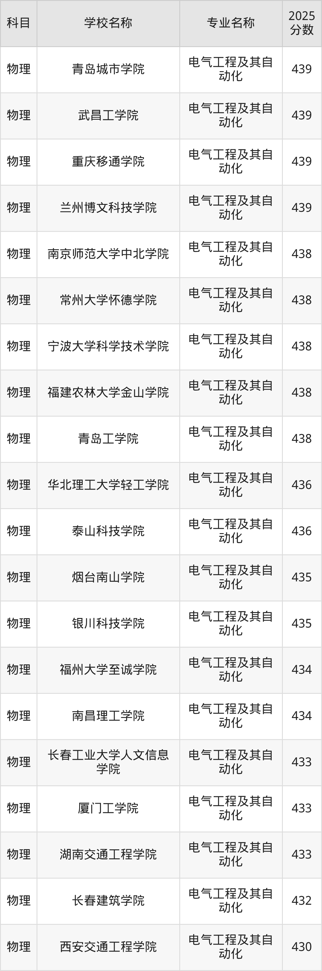 下文将为大家展示山西省大学电气工程及其自动化专业2025年在山西高考的最低录取分数线!