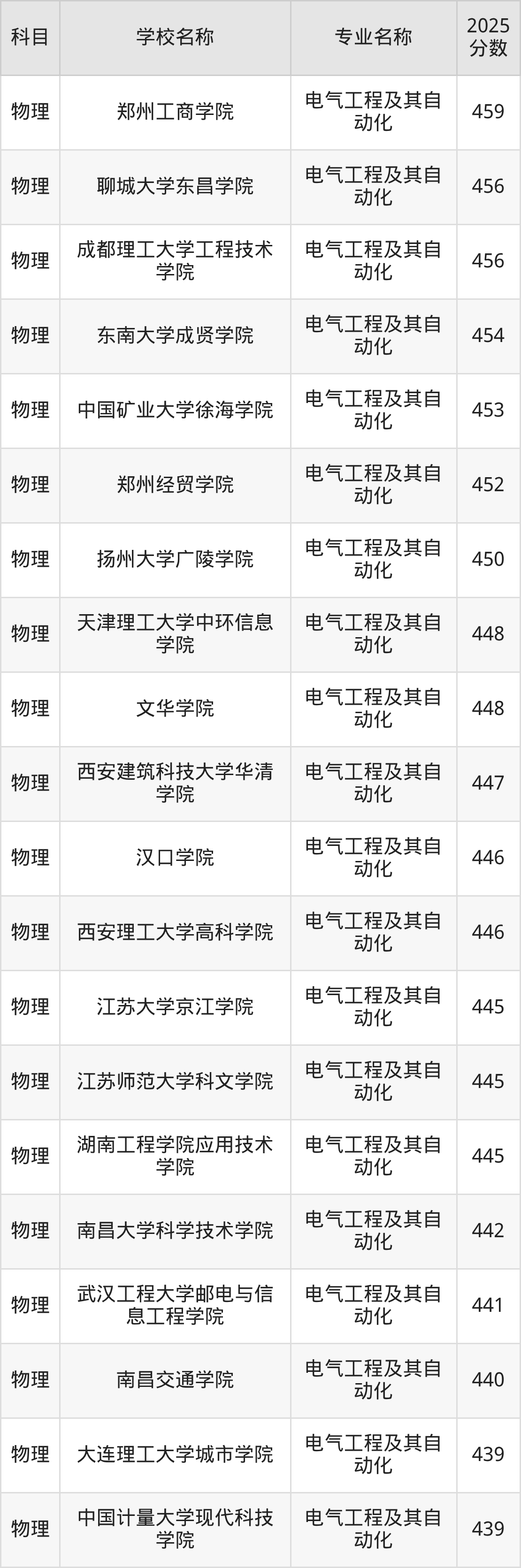 | 晋中信息学院 | 电气工程及其自 动化 | 439 |