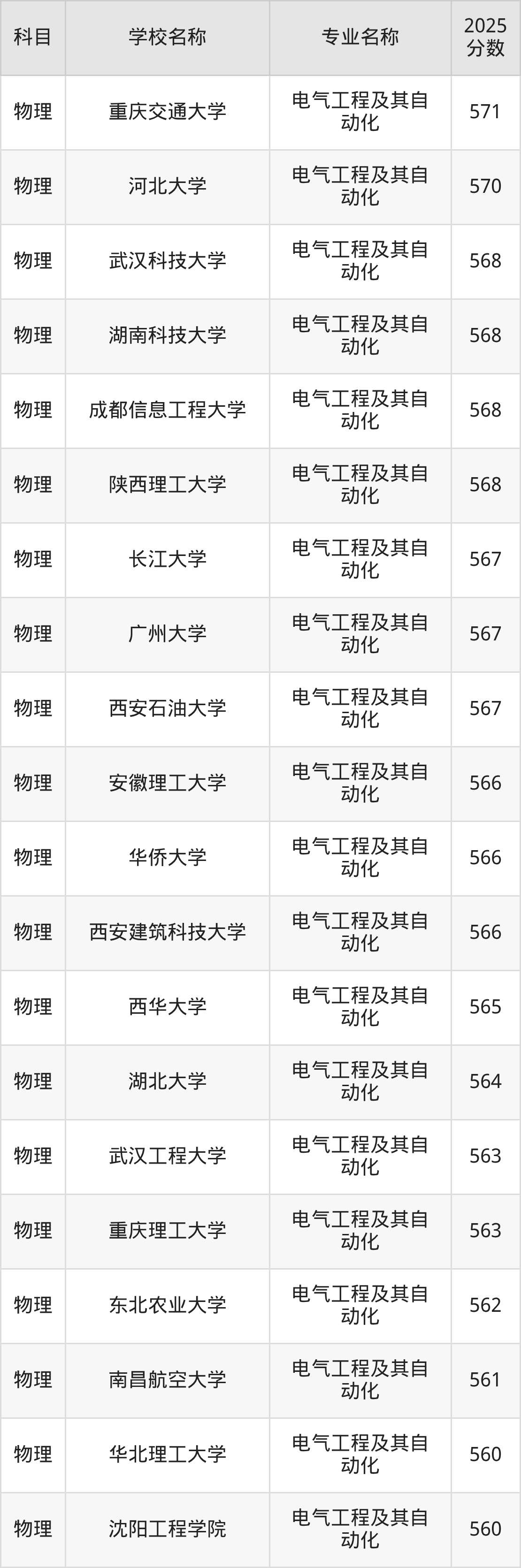| 山西大学 | 电气工程及其自 动化 | 565 |