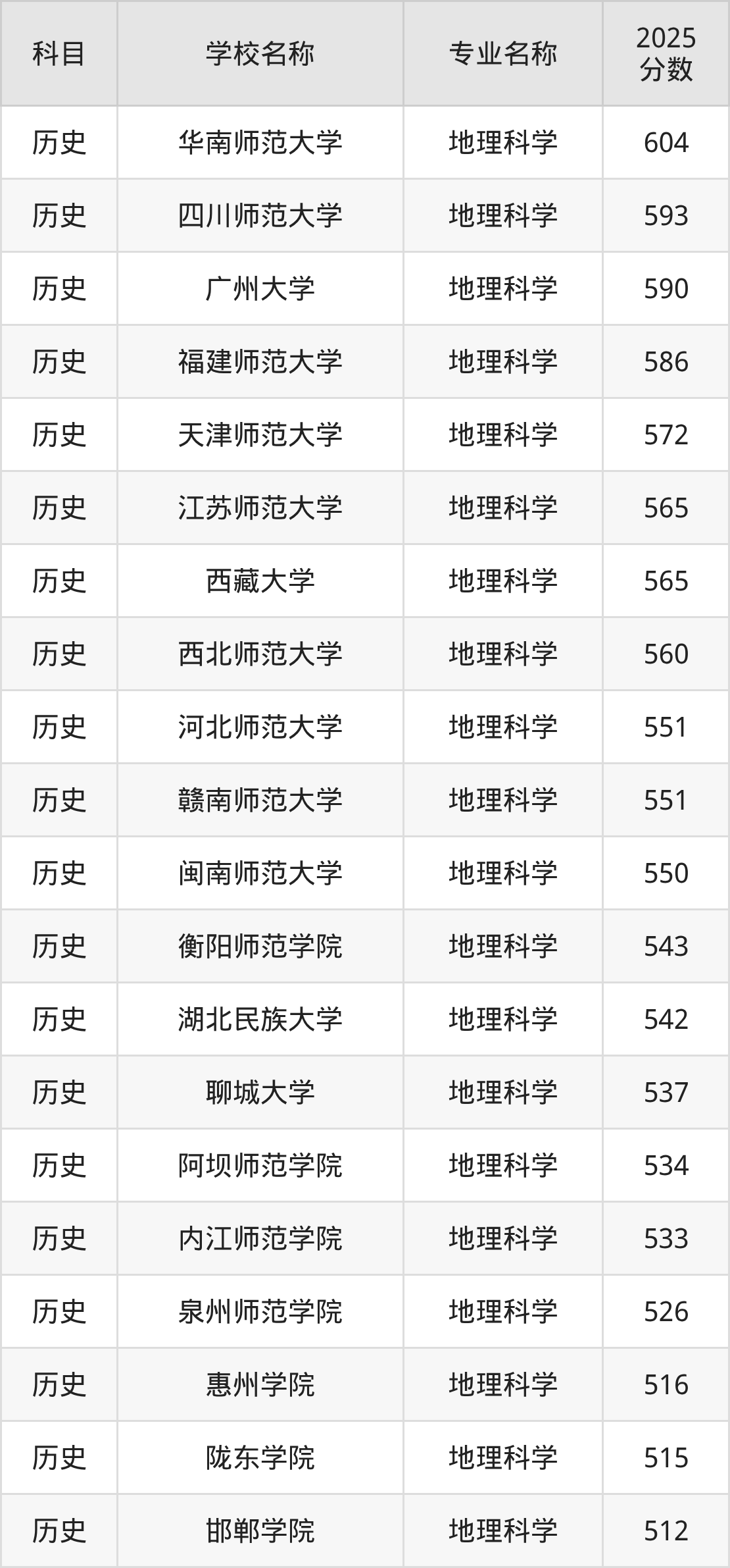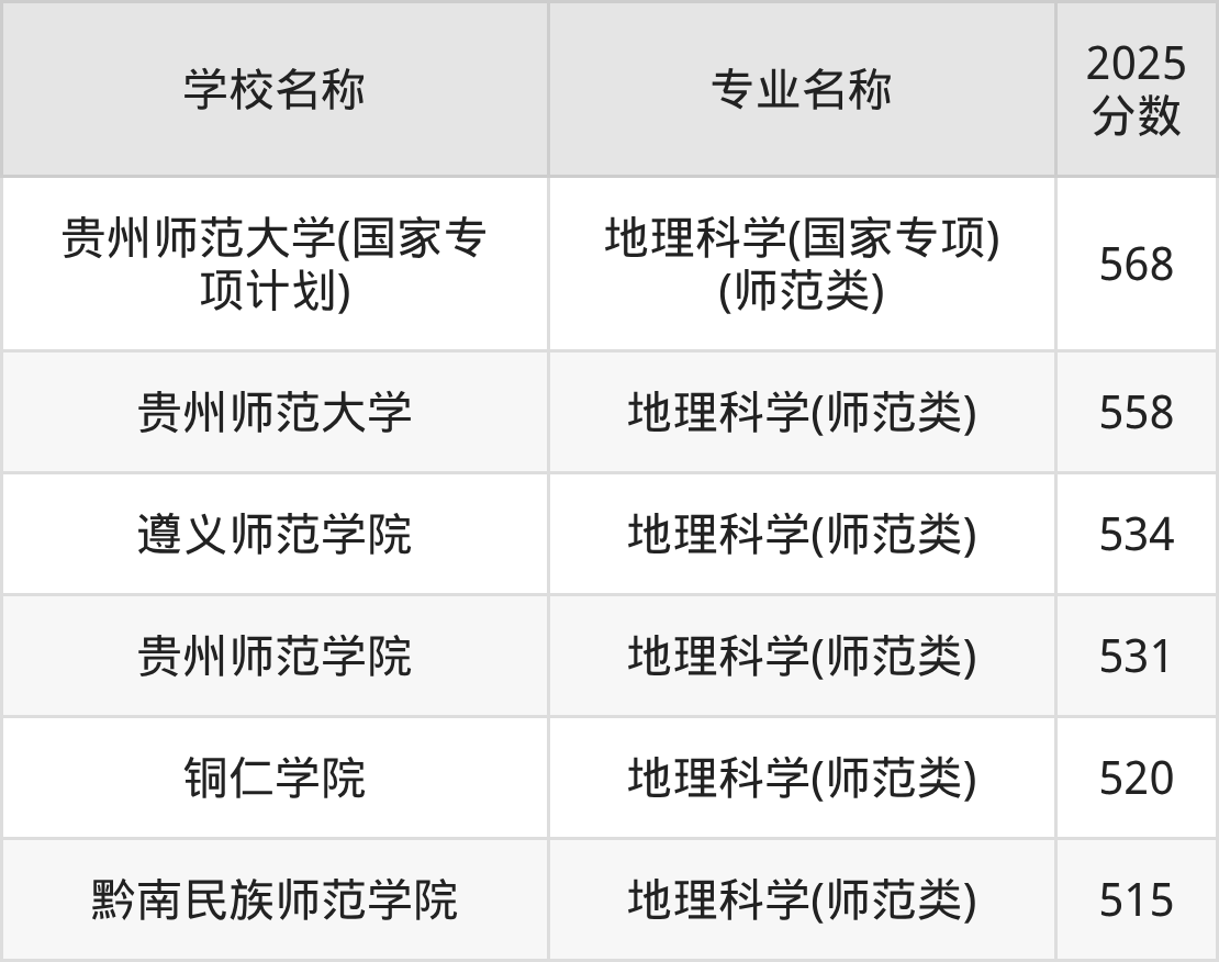 下文将为大家展示贵州省大学地理科学专业2025年在贵州高考的最低录取分数线!
