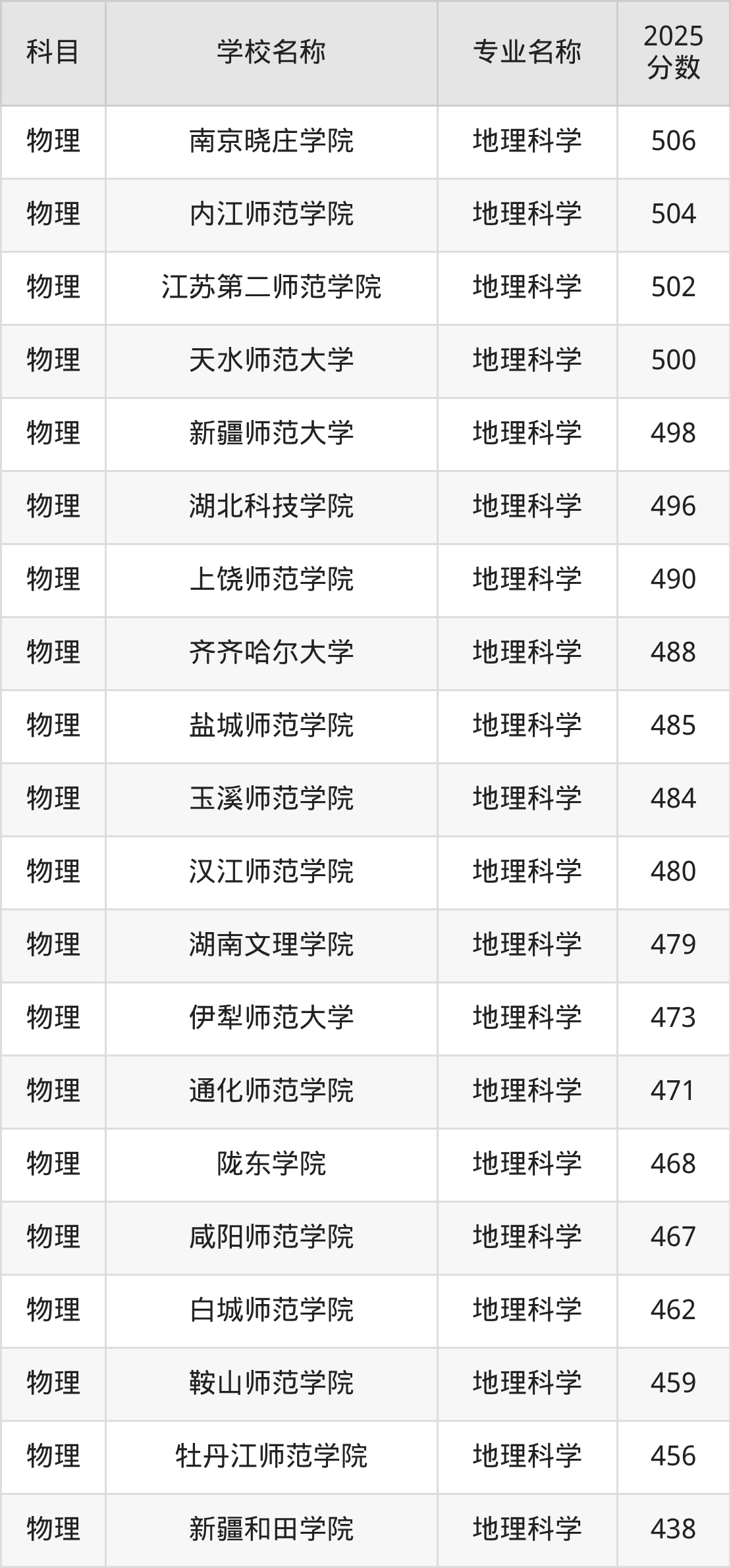 | 学校名称 | 专业名称 | 2025 分数 |