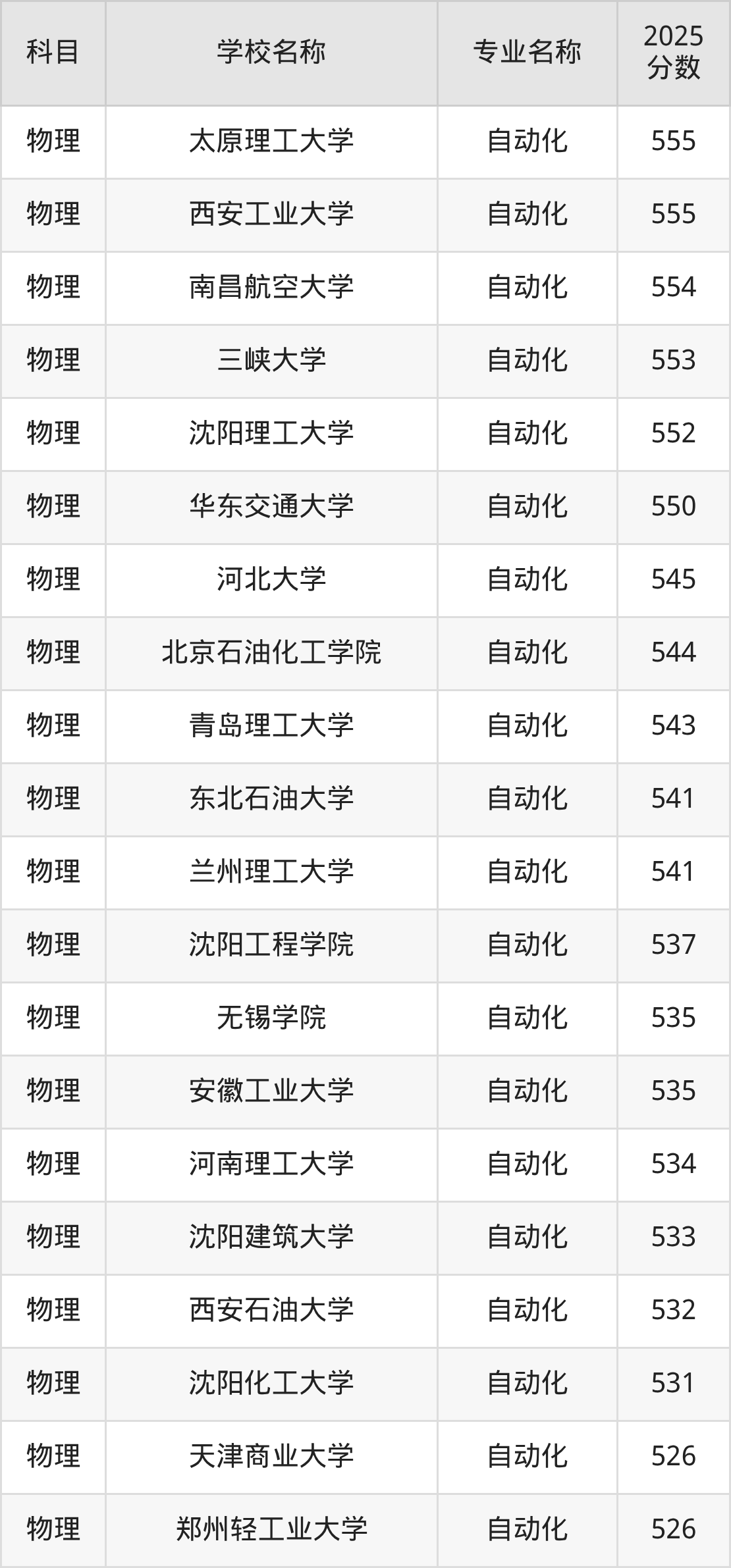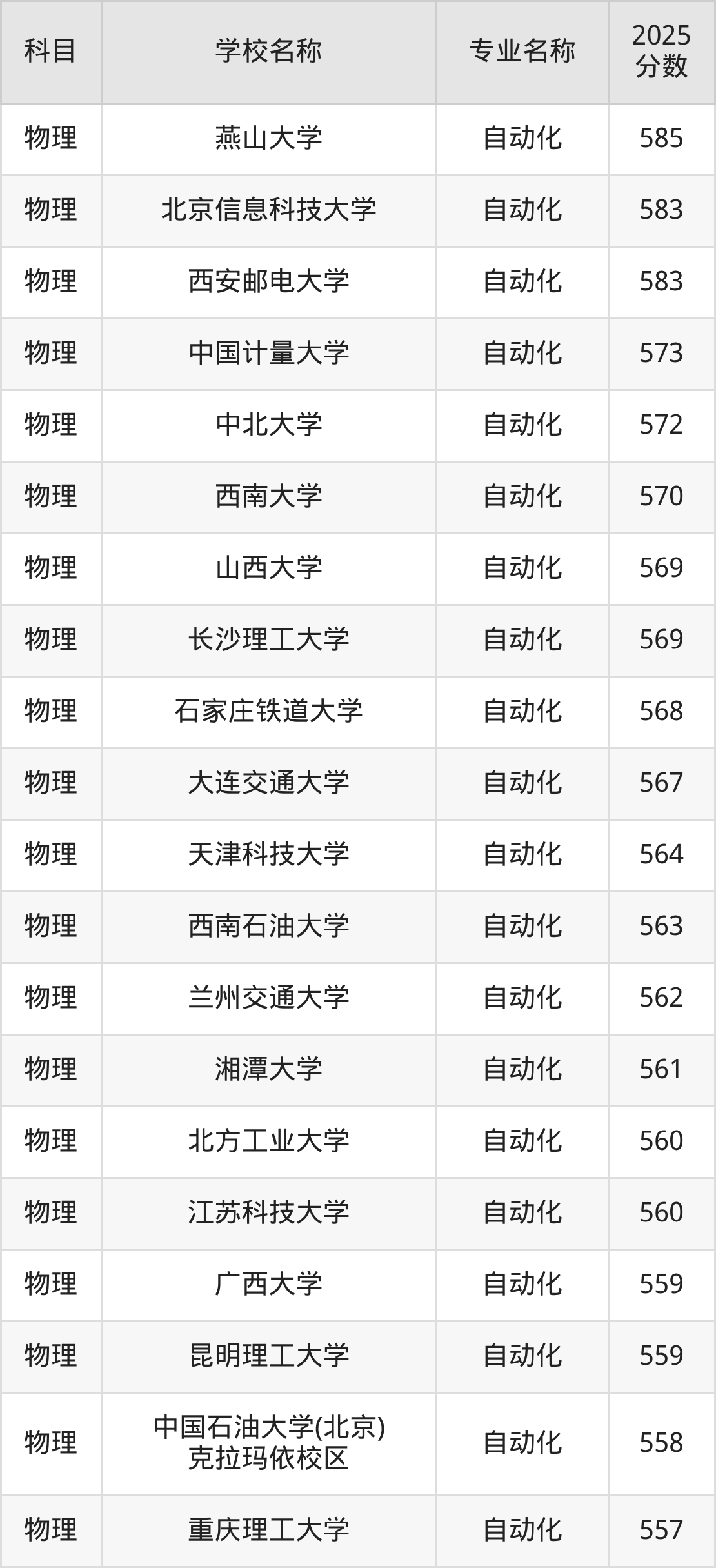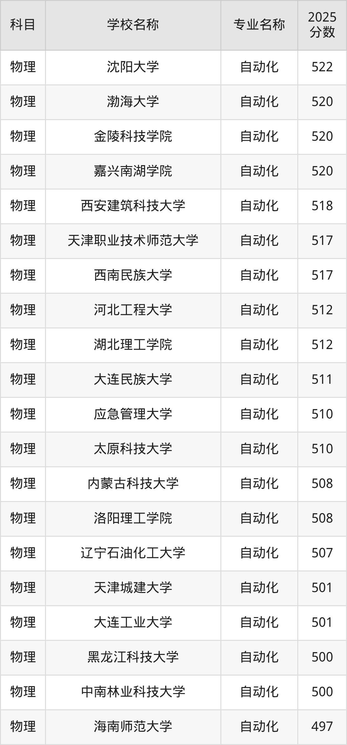 下文将为大家展示吉林省大学自动化专业2025年在吉林高考的最低录取分数线!