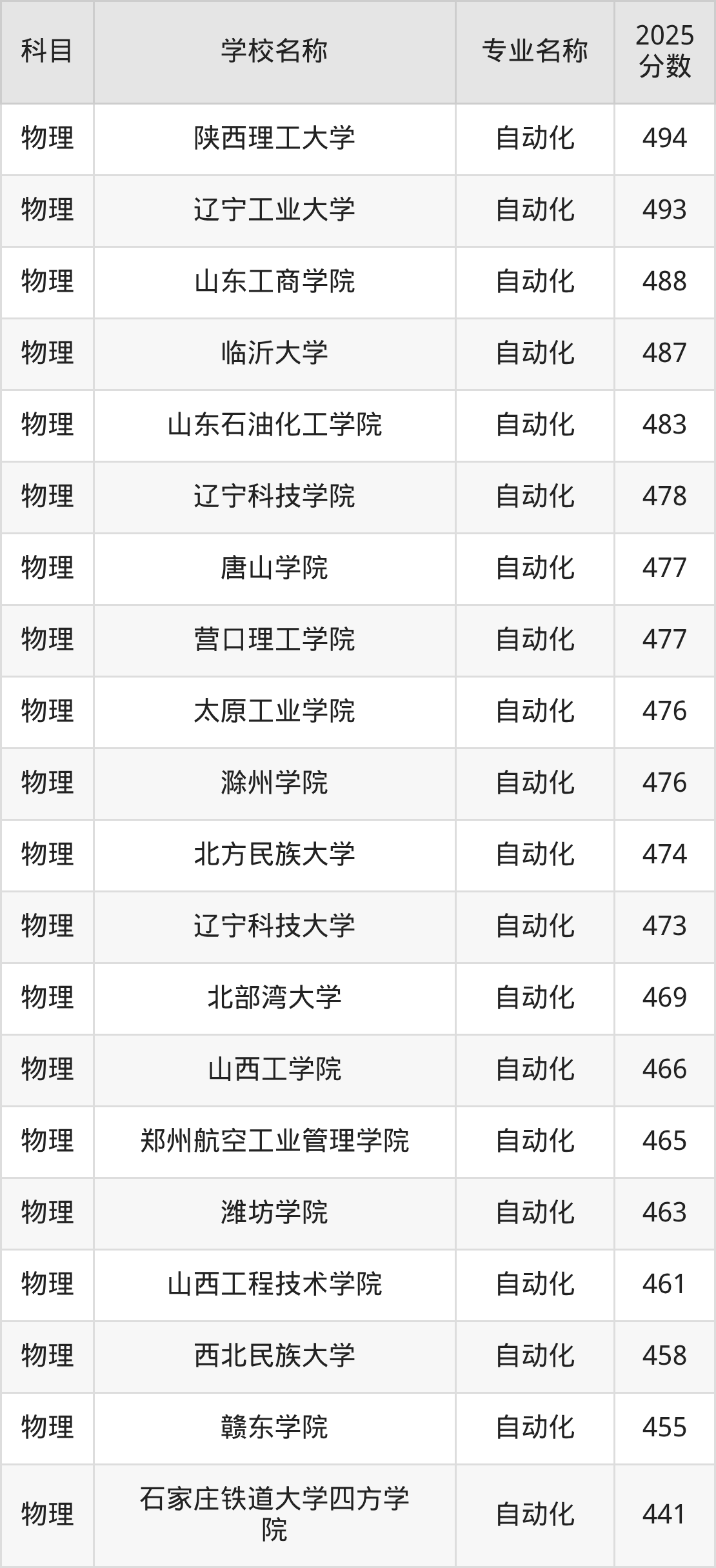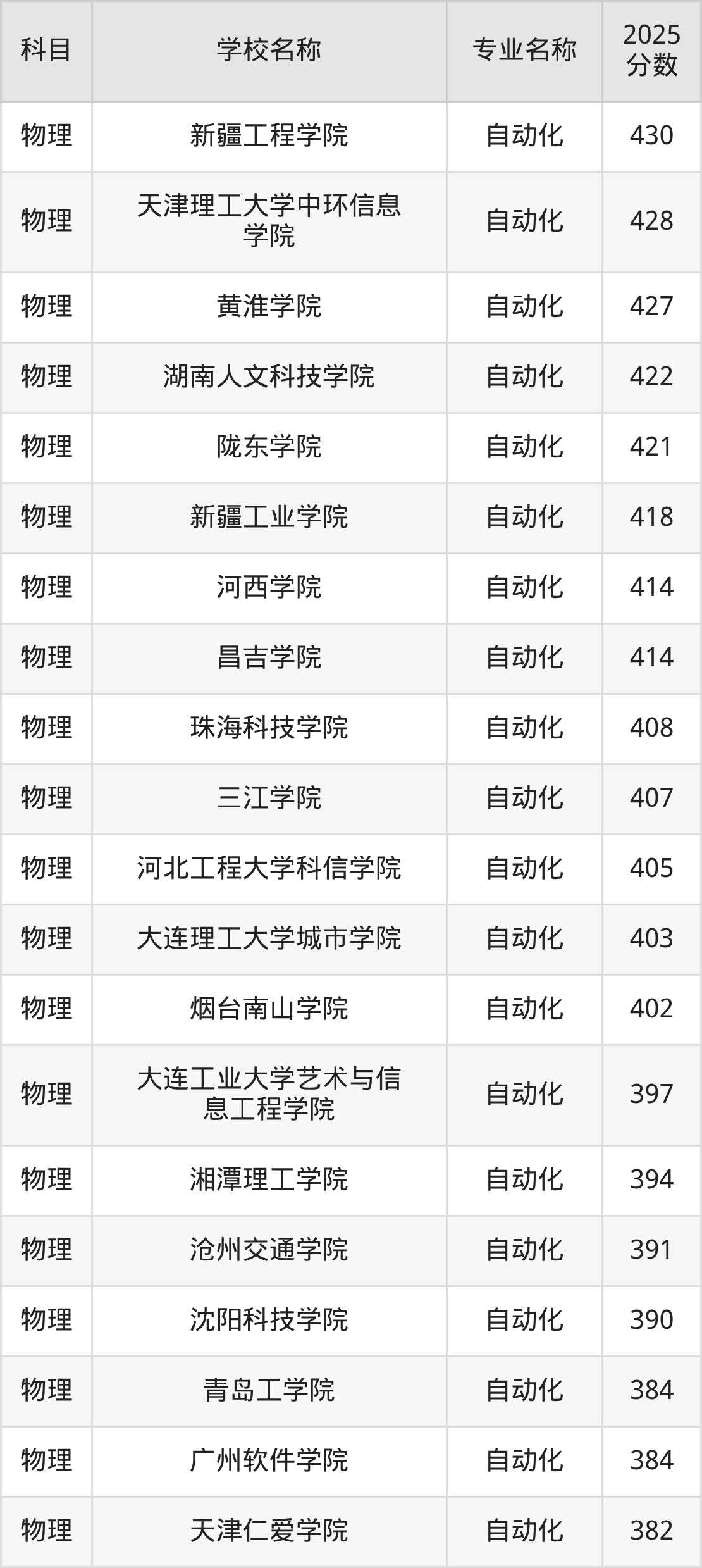 | 长春科技学院 | 自动化 | 379 |