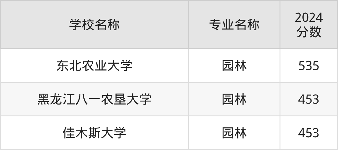 | 东北农业大学 | 园林 | 534 |