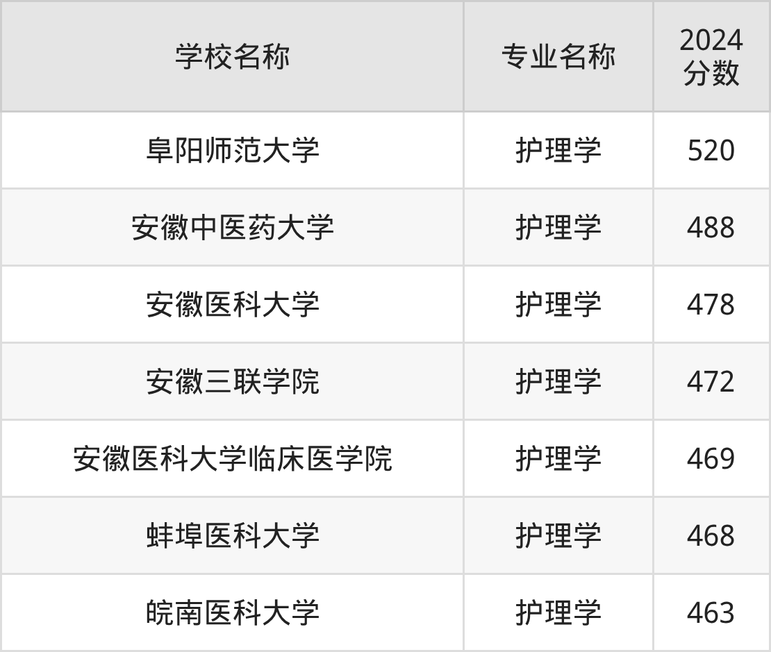 | 安徽三联学院 | 护理学 | 472 |
