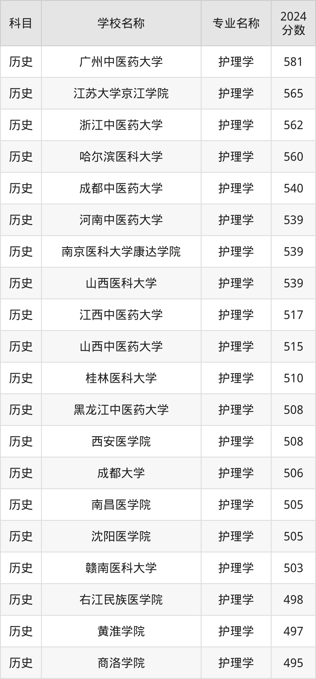 | 安徽中医药大学 | 护理学 | 519 |