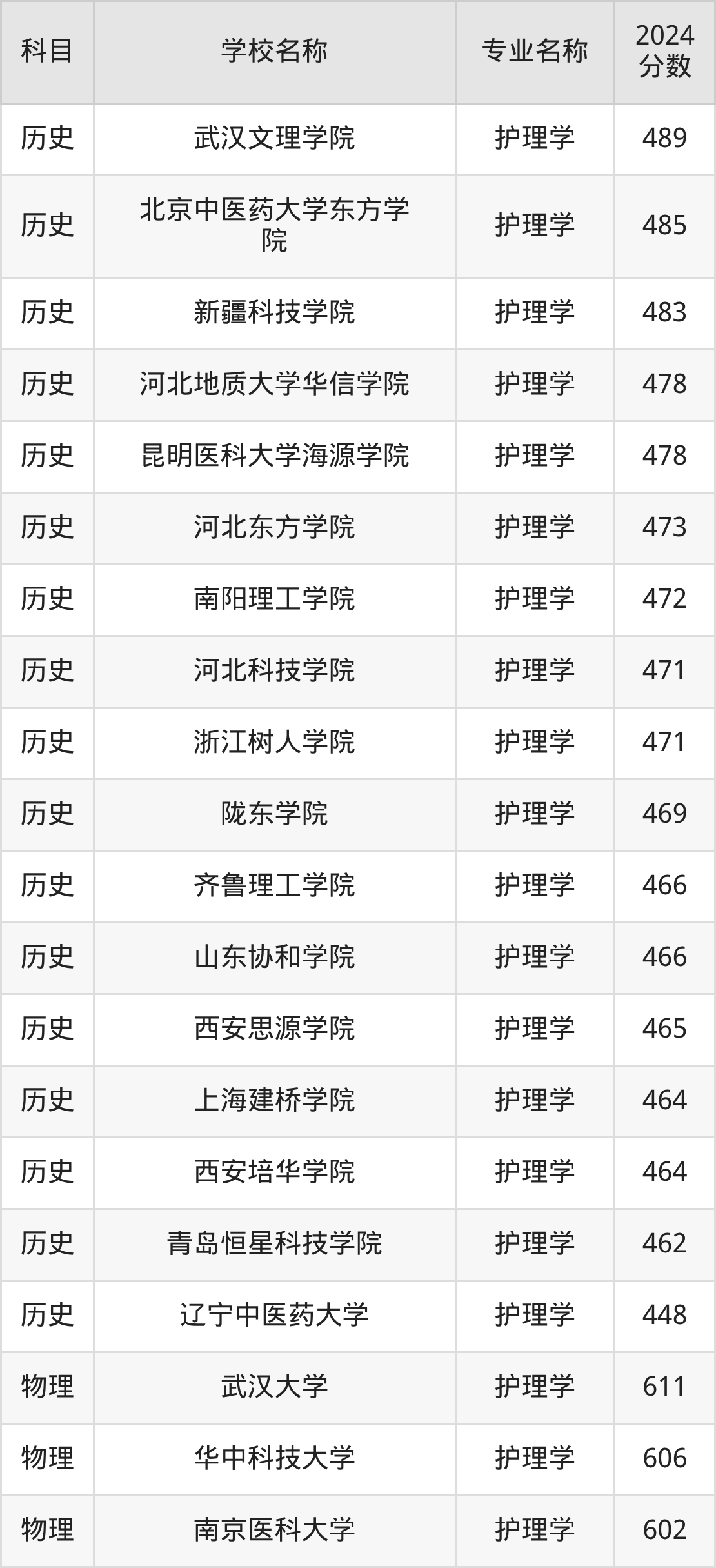 | 亳州学院 | 护理学 | 491 |
