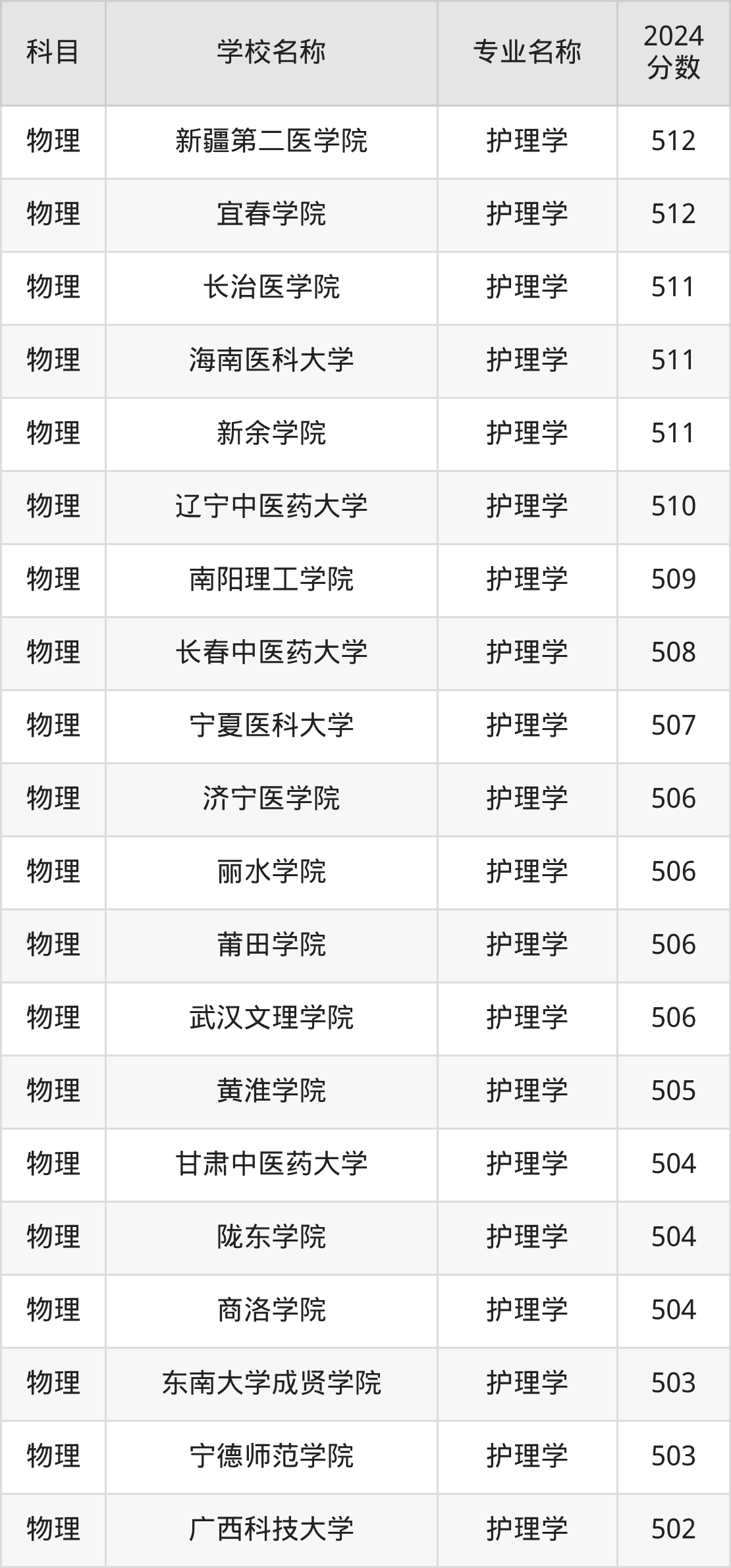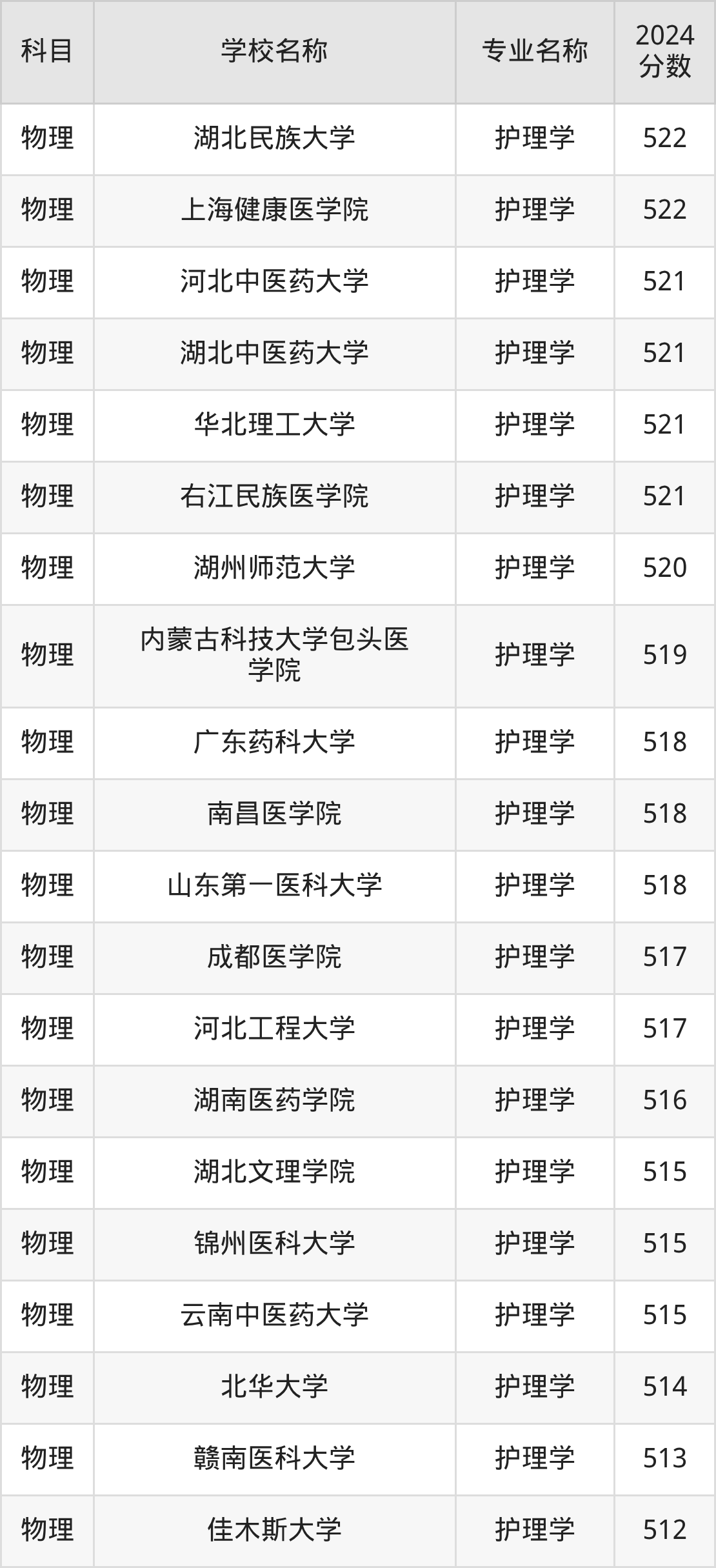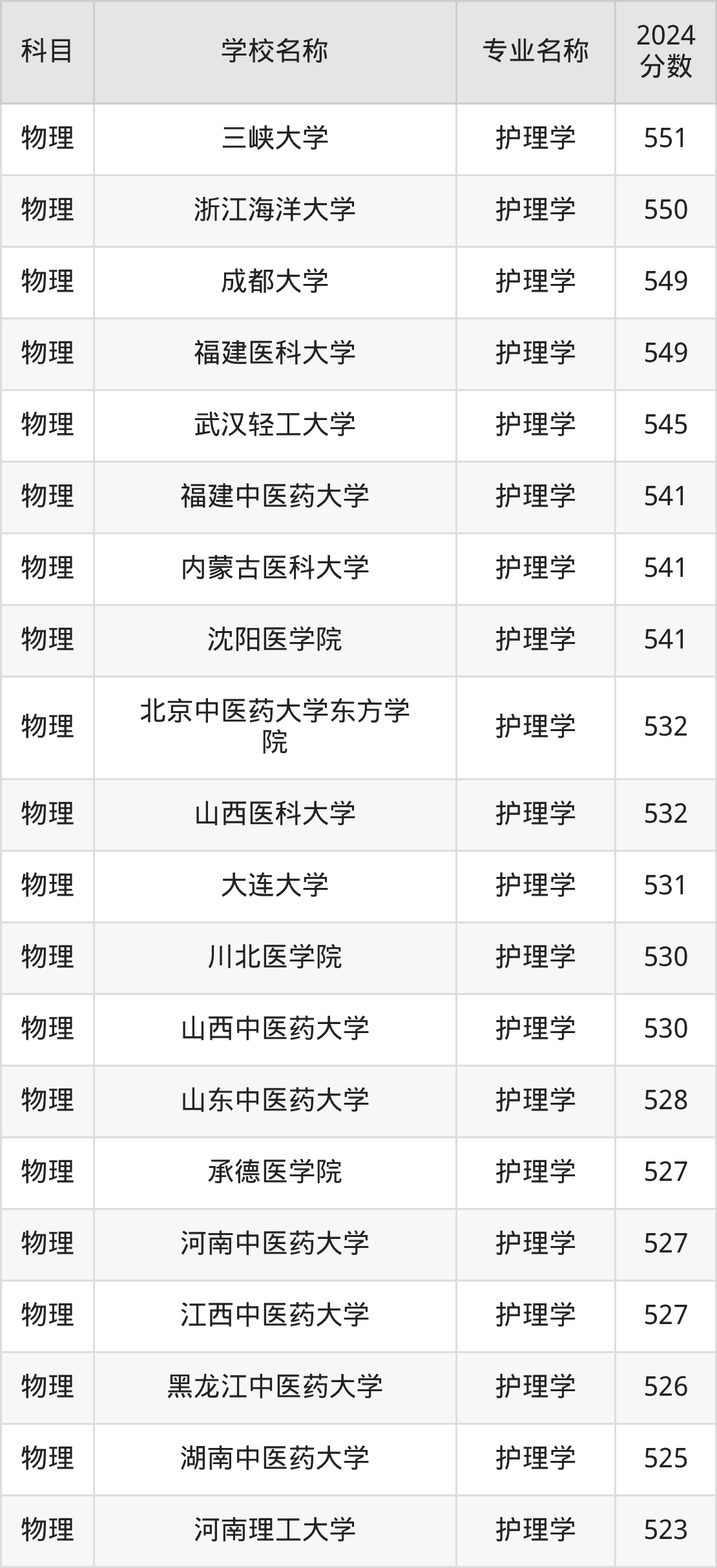 | 阜阳师范大学 | 护理学 | 522 |