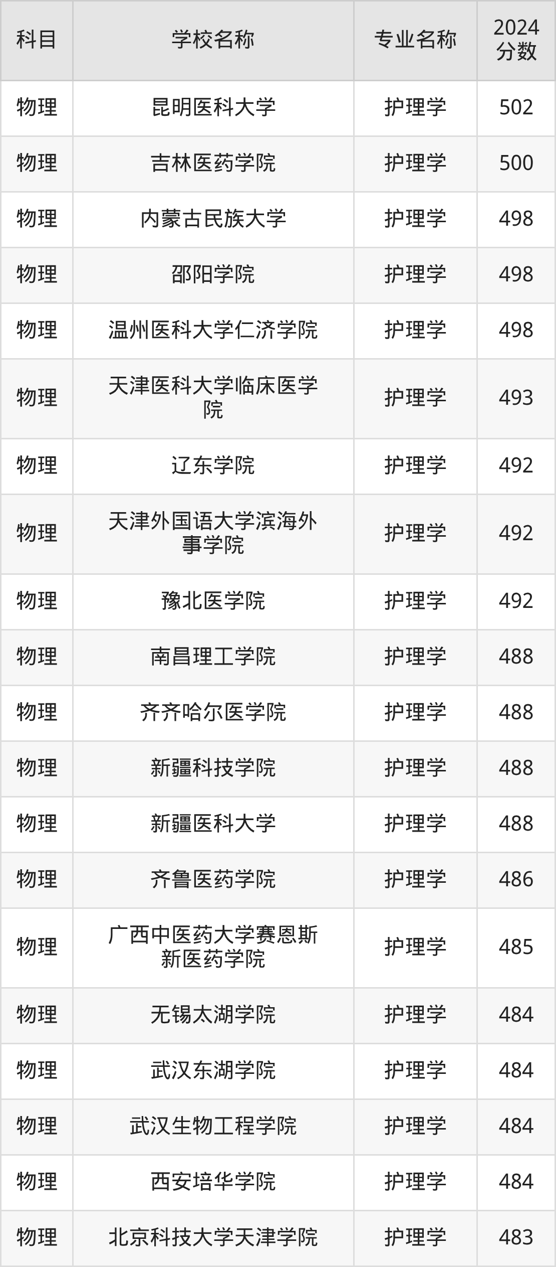 | 皖南医科大学 | 护理学 | 503 |