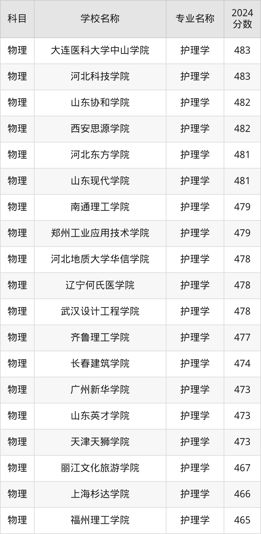| 学校名称 | 专业名称 | 2024 分数 |