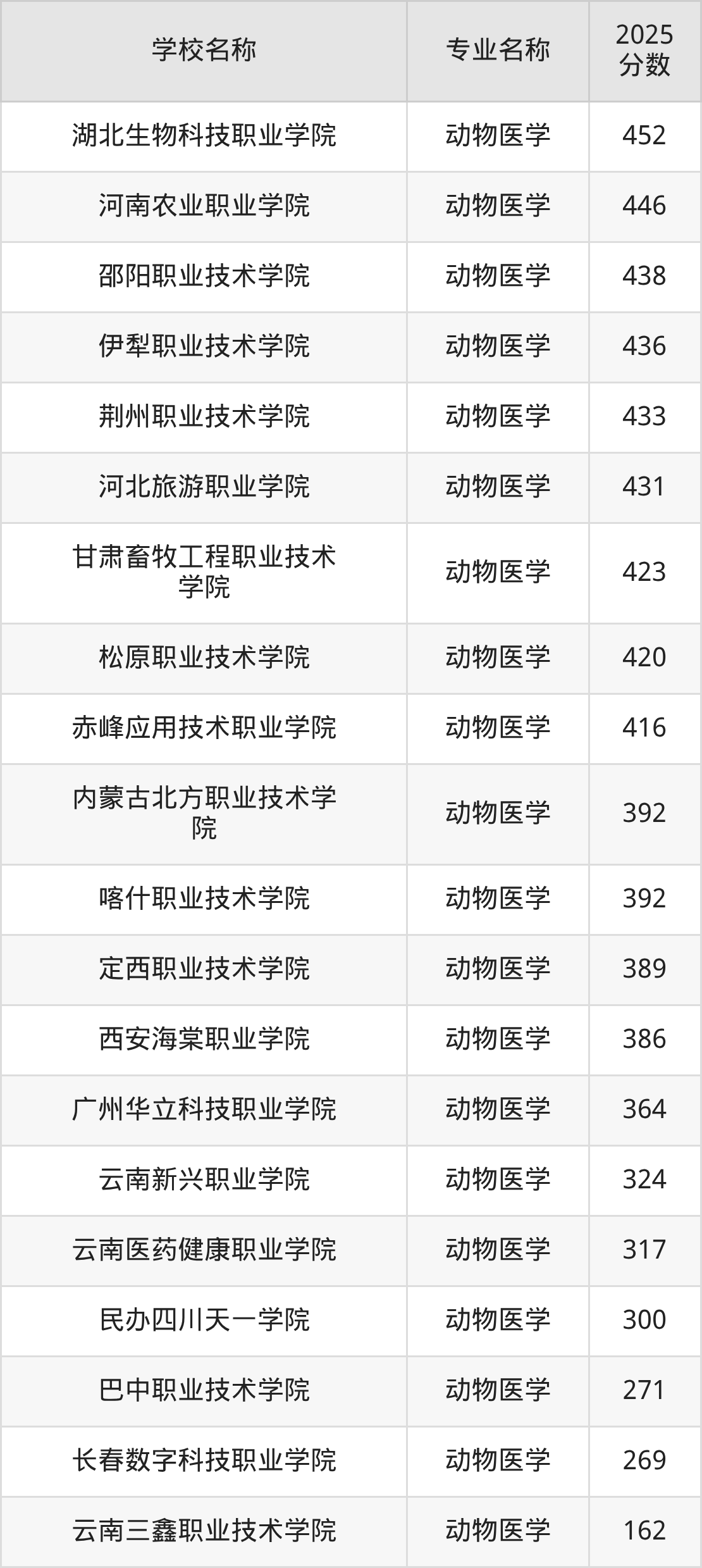 | 山东畜牧兽医职业学院 | 动物医学 | 438 |