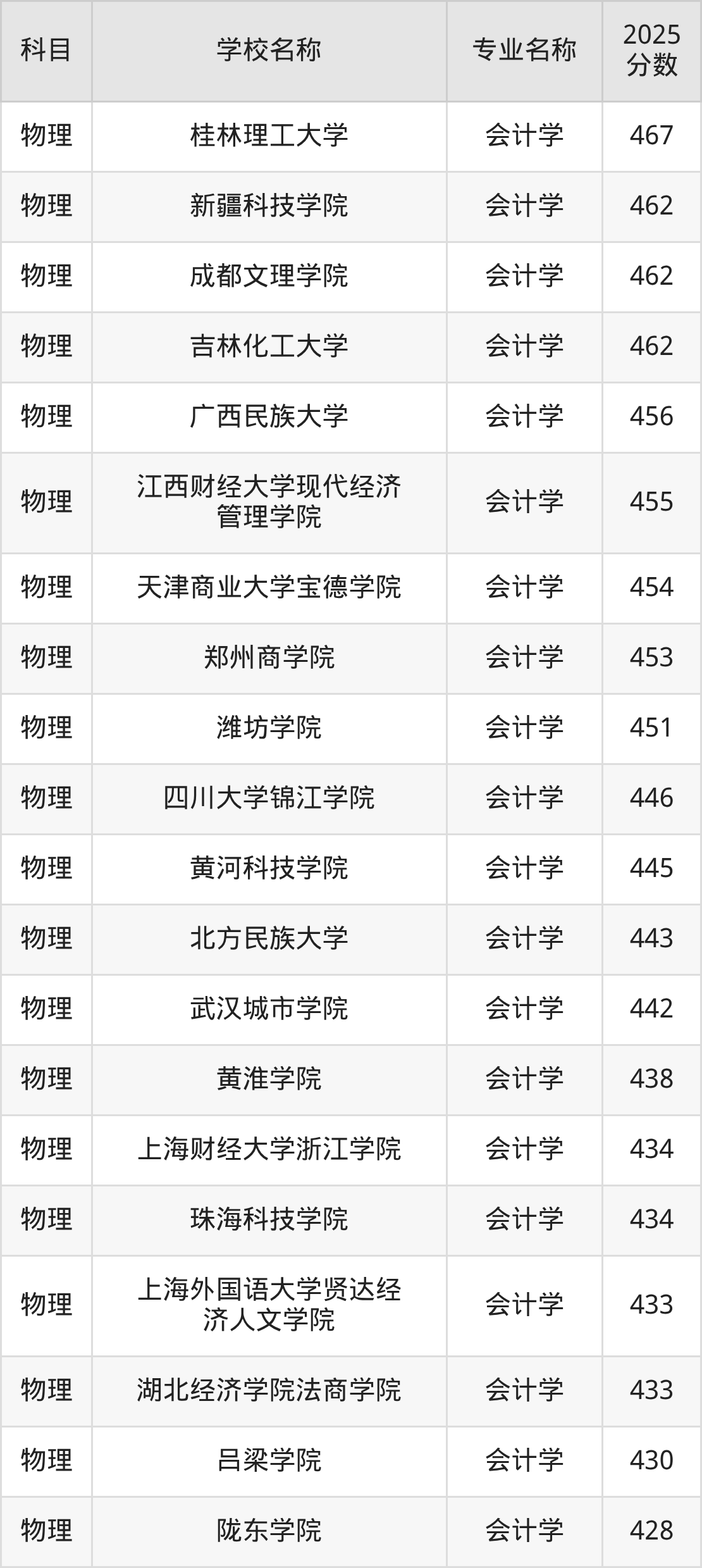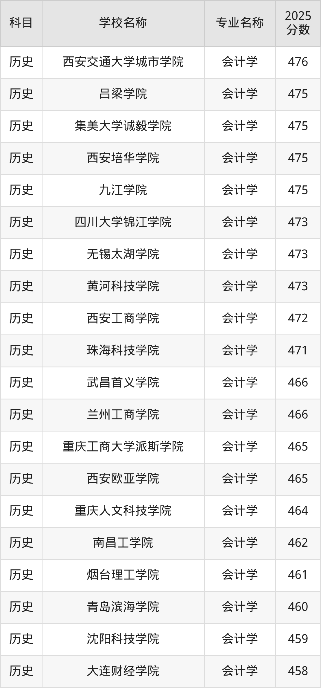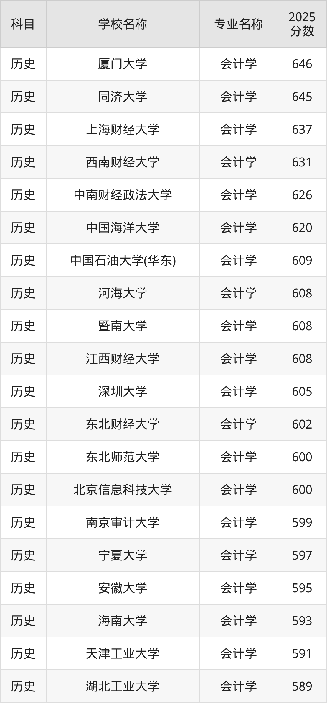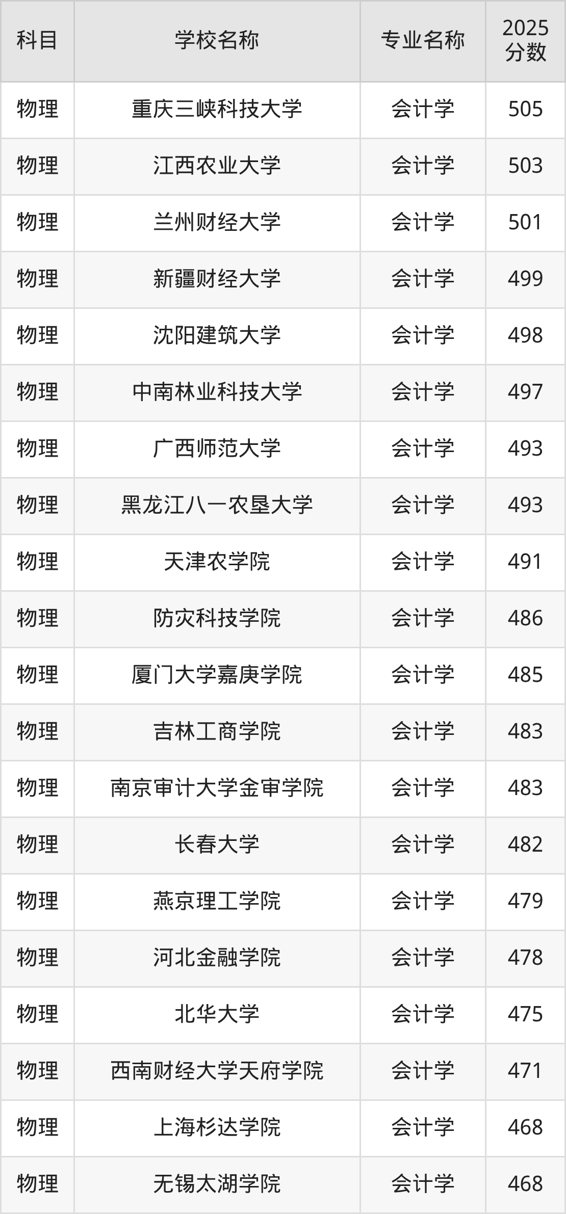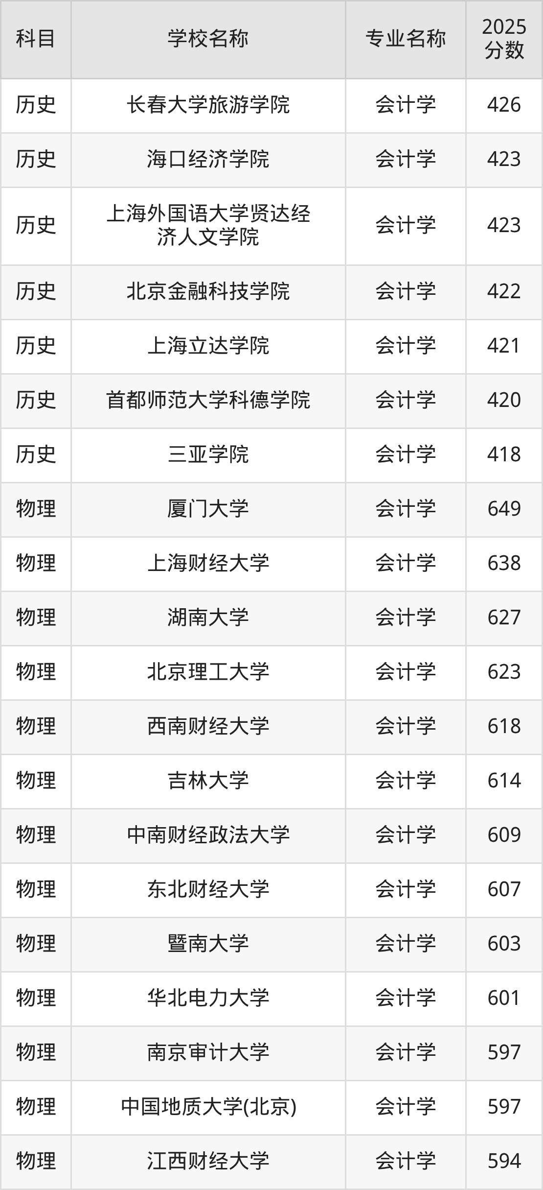 | 学校名称 | 专业名称 | 2025 分数 |