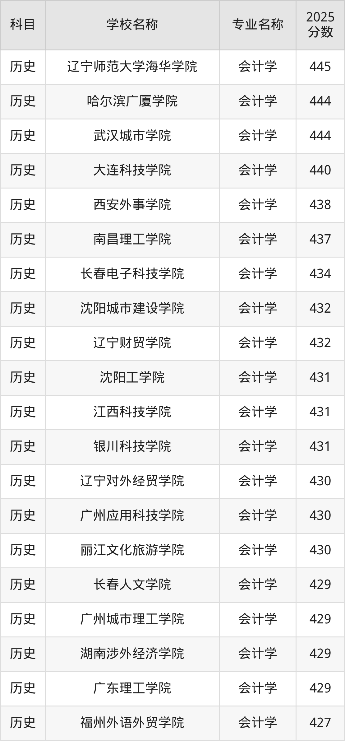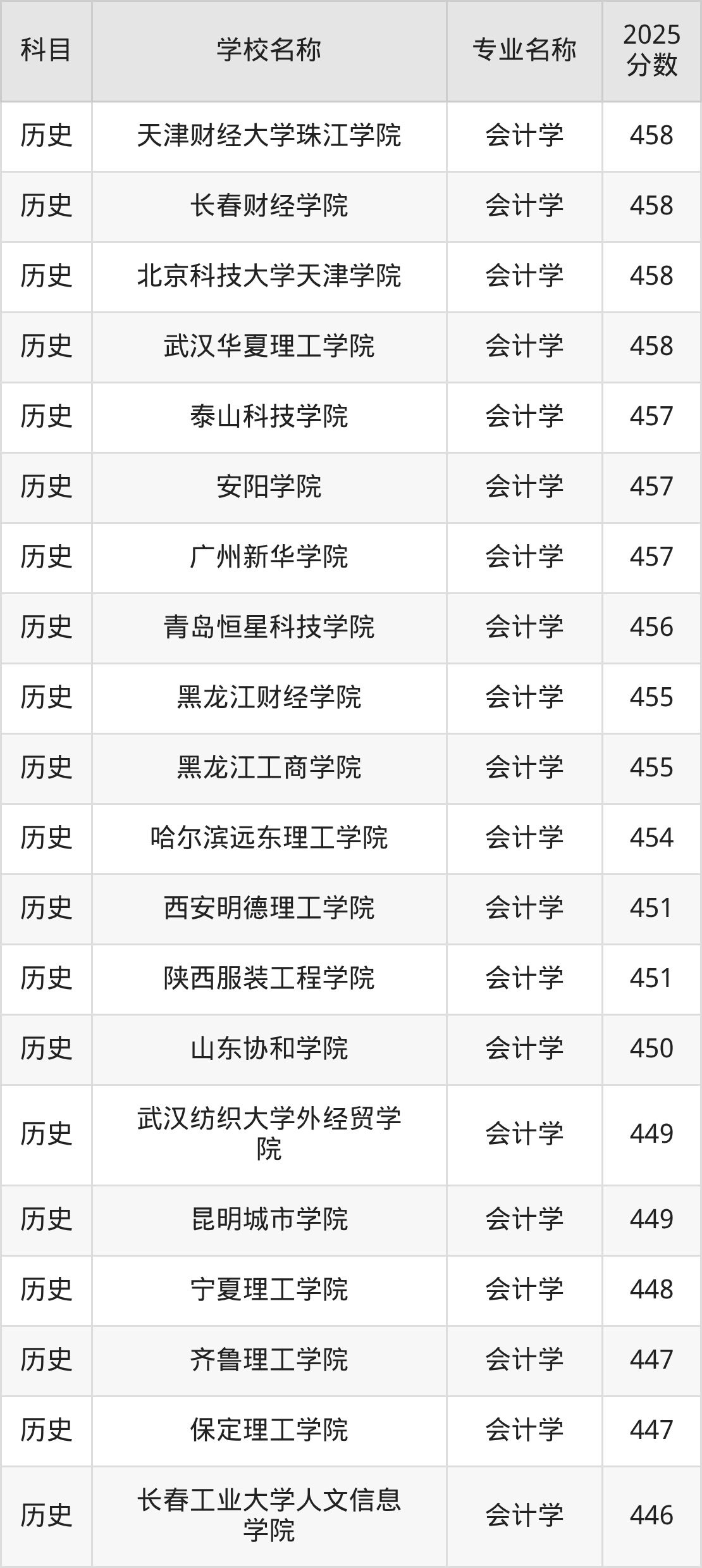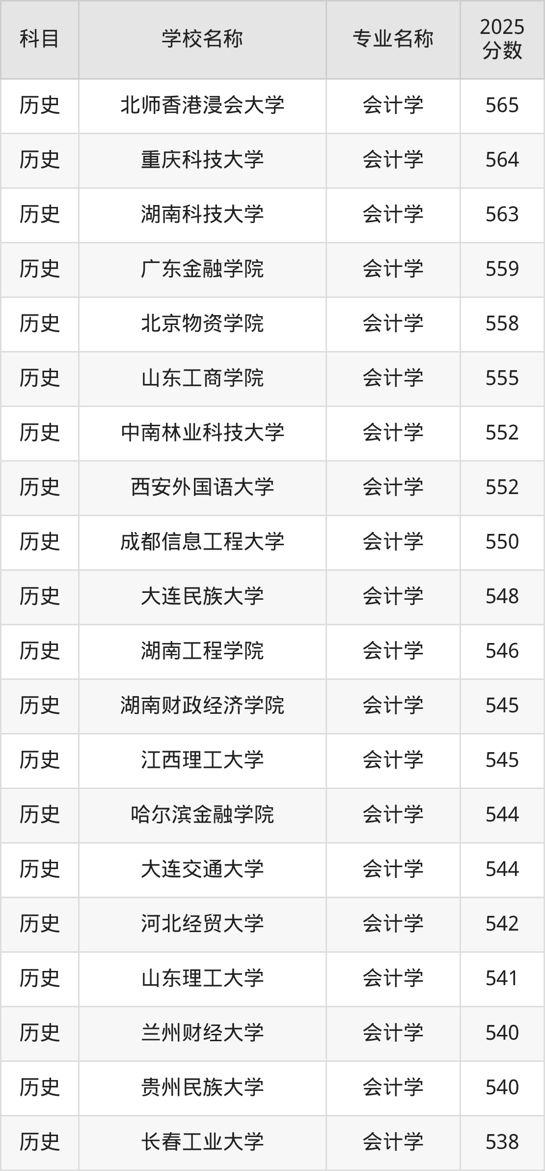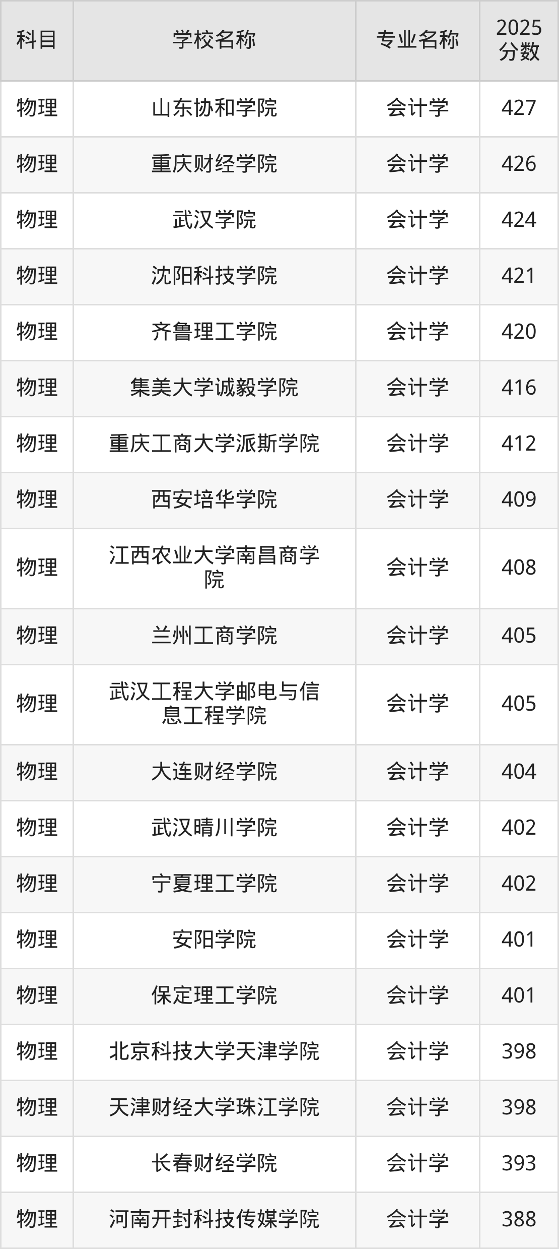 | 学校名称 | 专业名称 | 2025 分数 |
