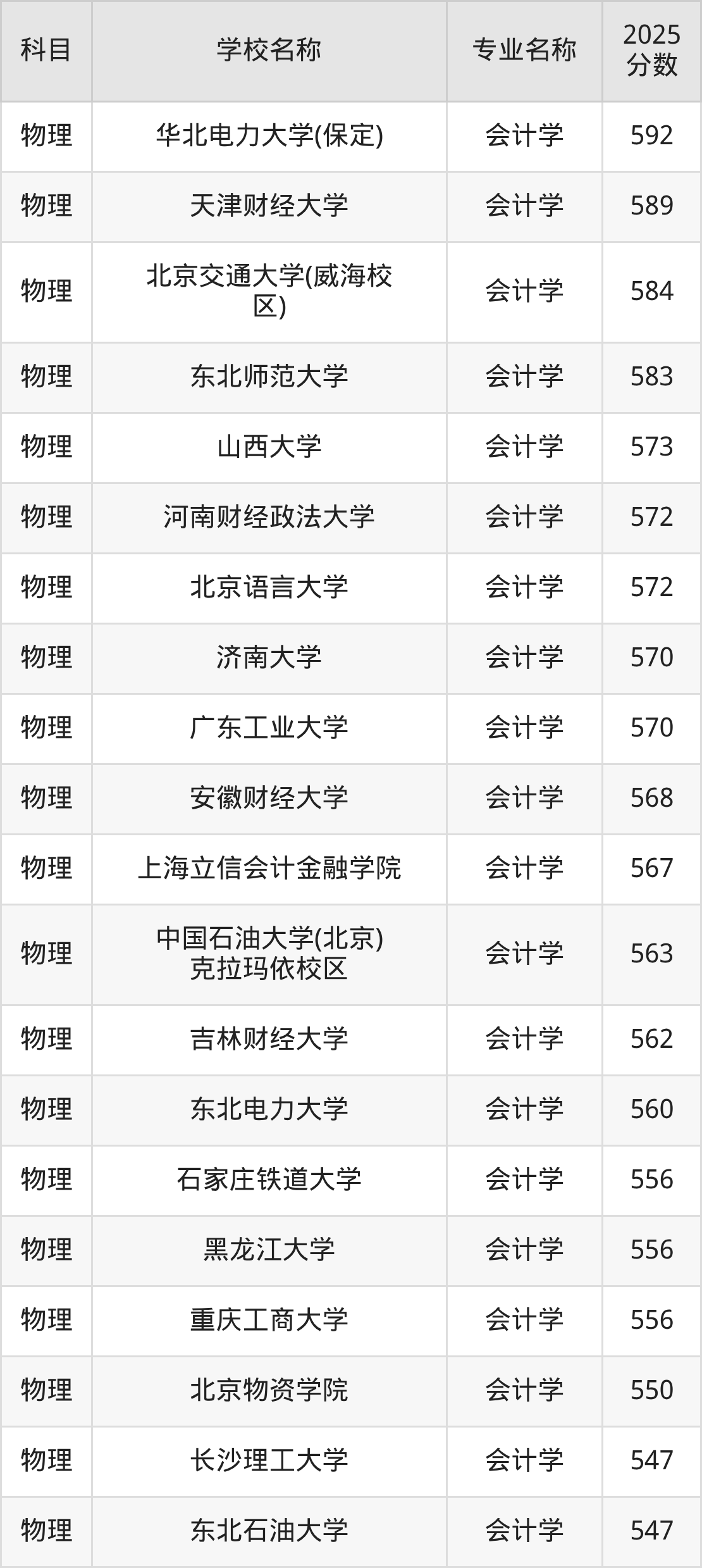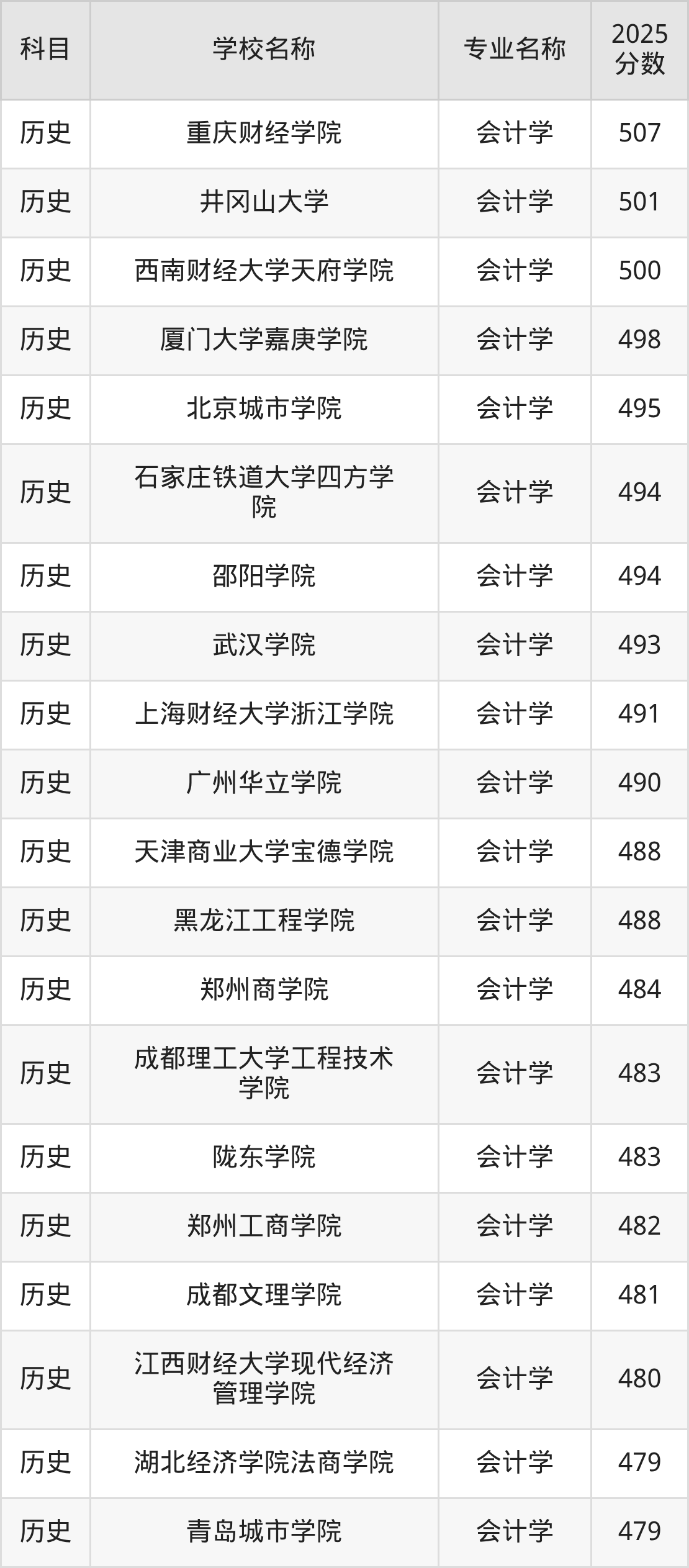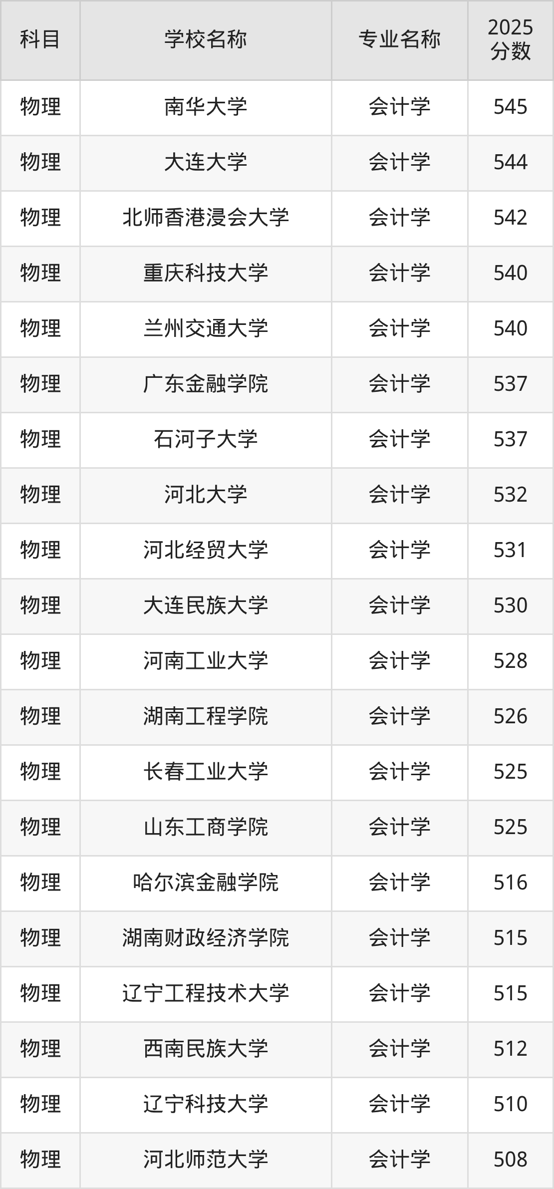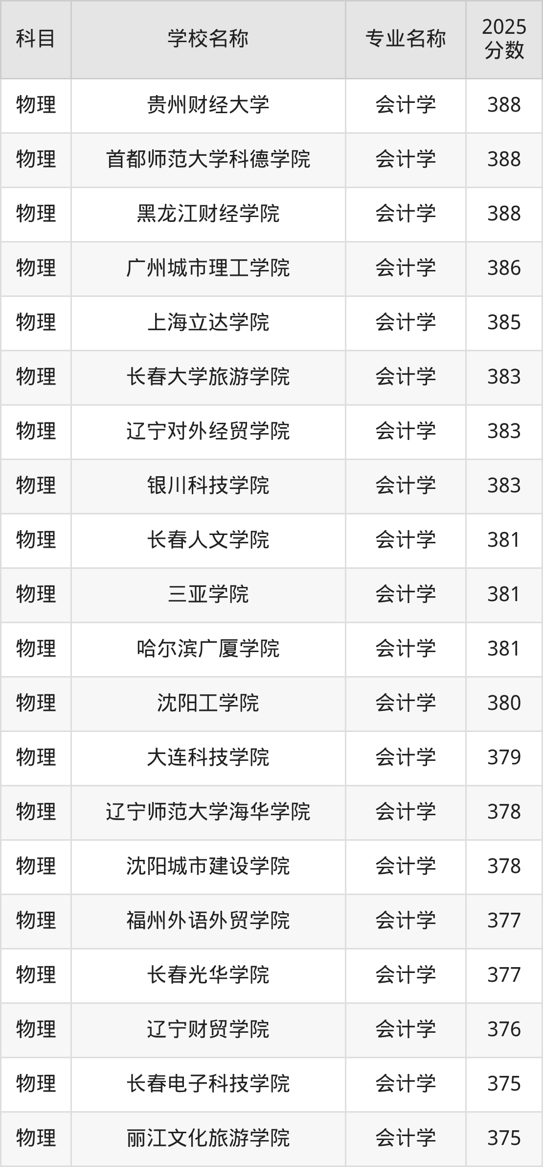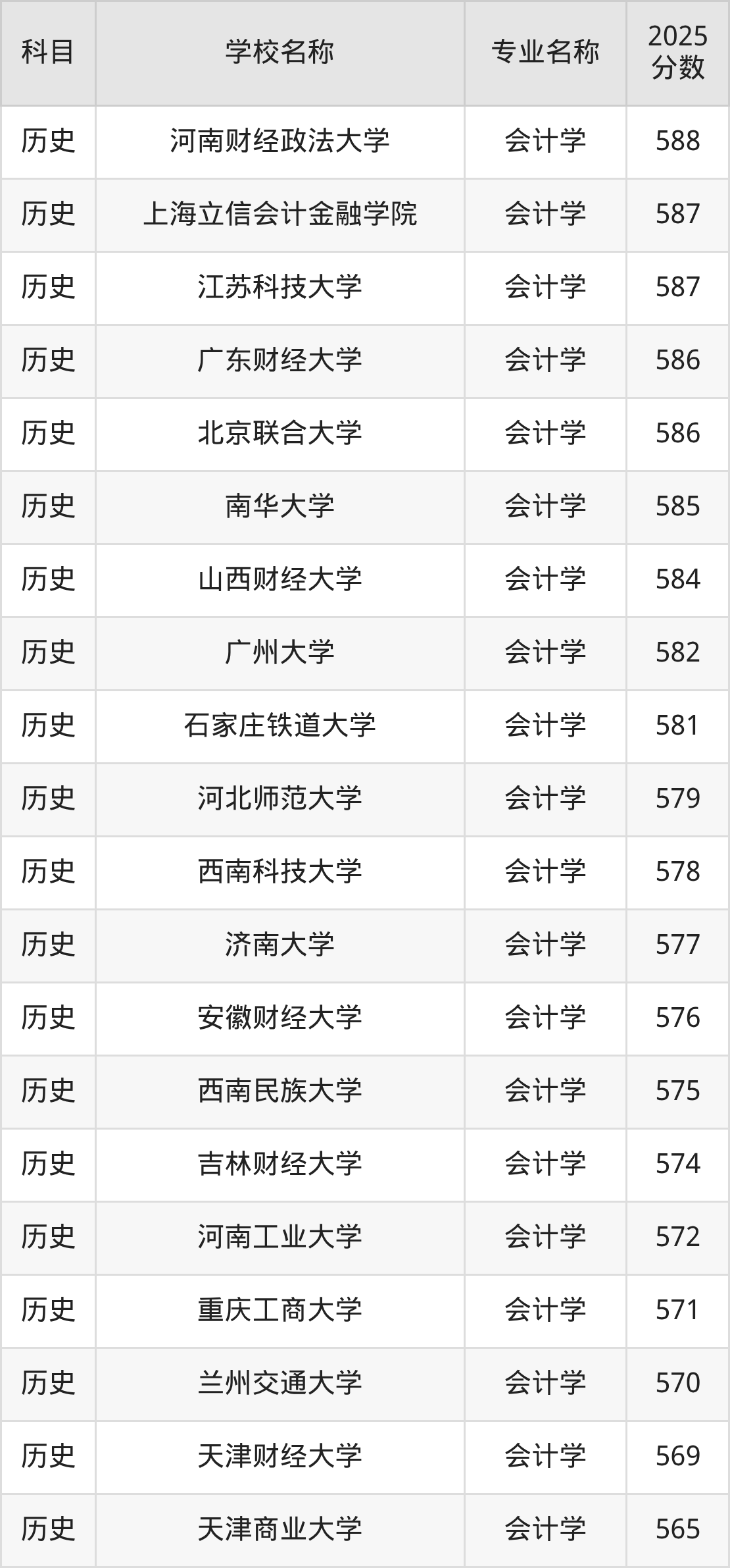| 学校名称 | 专业名称 | 2025 分数 |