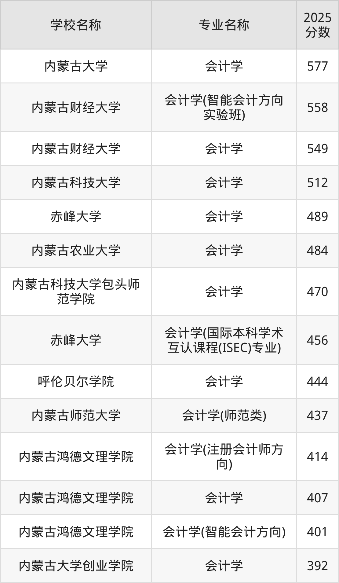 下文将为大家展示内蒙古自治区大学会计学专业2025年在内蒙古高考的最低录取分数线!