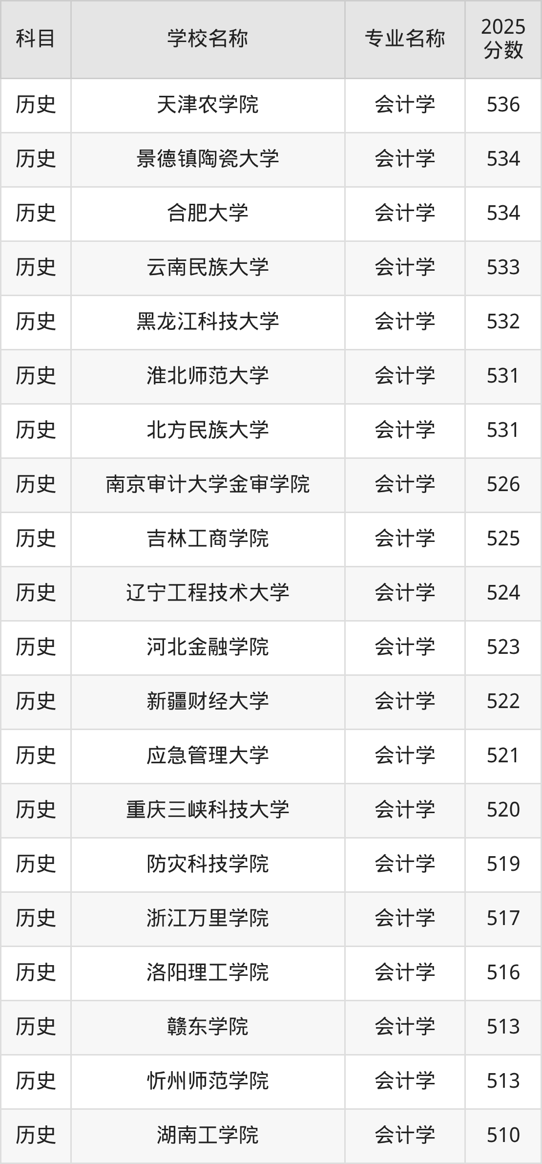 内蒙古高考历史组:会计学专业的最低分是459分~571分