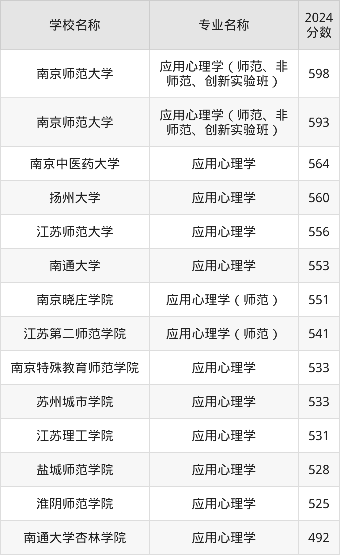 下文将为大家展示江苏省大学应用心理学专业2024年在江苏高考的最低录取分数线!