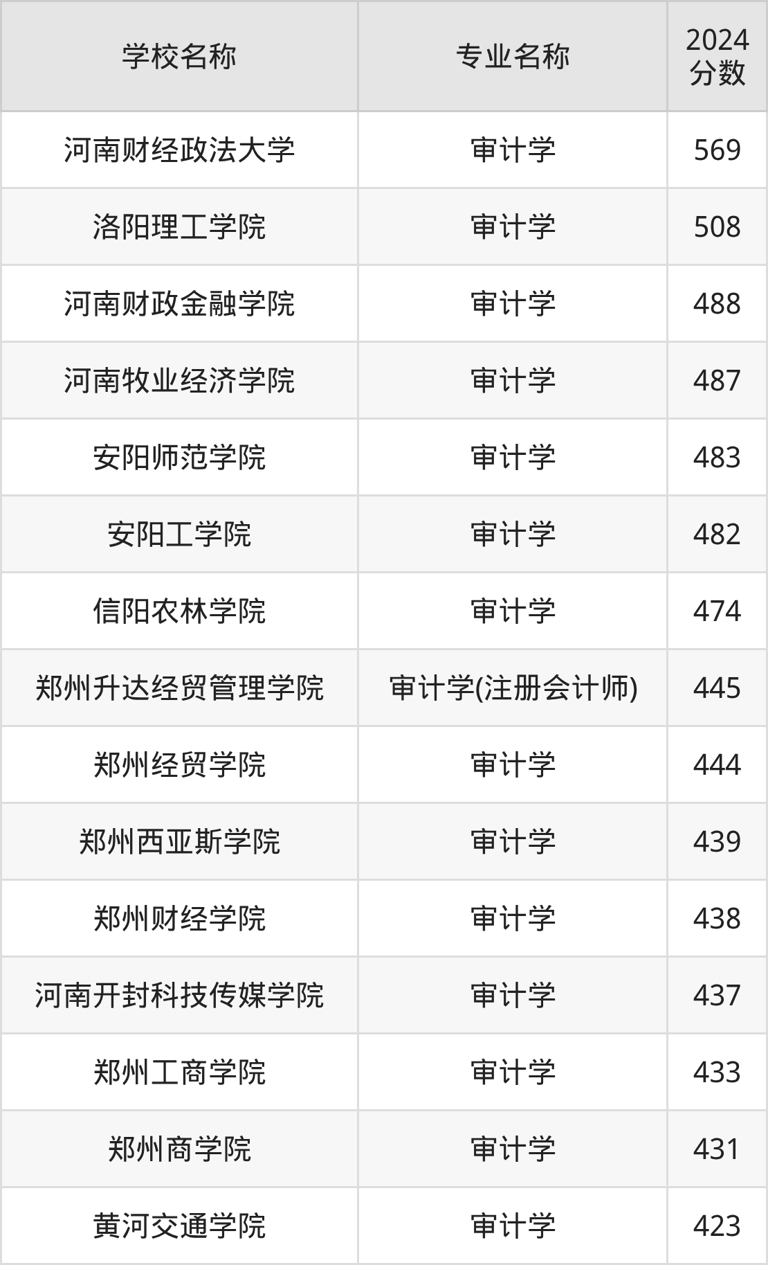 | 河南开封科技传媒学院 | 审计学 | 474 |