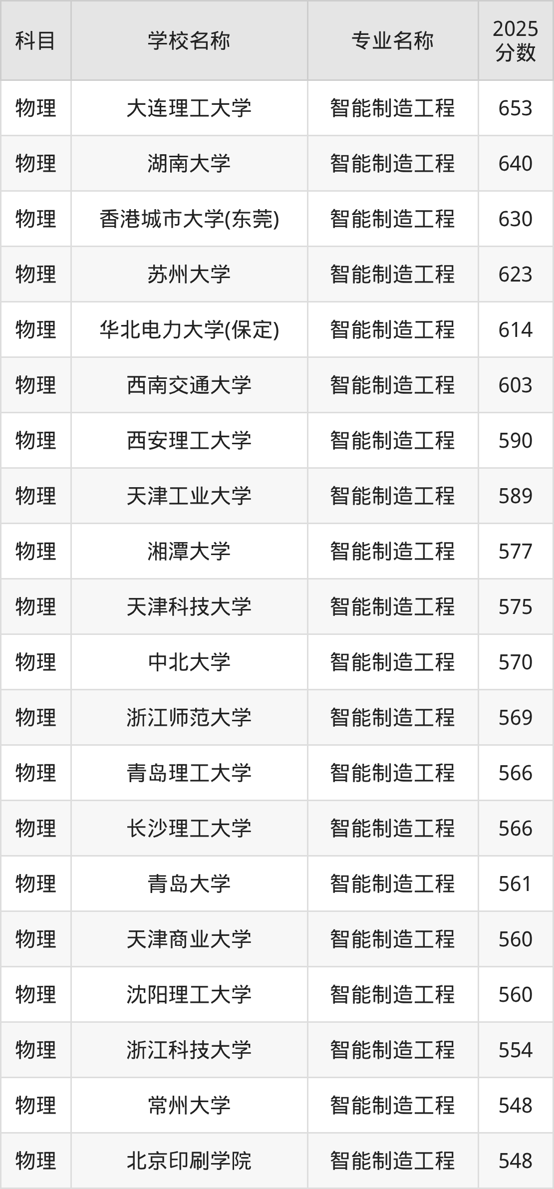 通过上文大家可以知晓,在内蒙古自治区内招智能制造工程专业的院校数量较少,所以下文将为2026届高考生继续展示:自治区外大学的智能制造工程专业2025年在内蒙古高考的录取情况,包含大连理工大学、湖南大学、香港城市大学(东莞)、苏州大学、华北电力大学(保定)。
