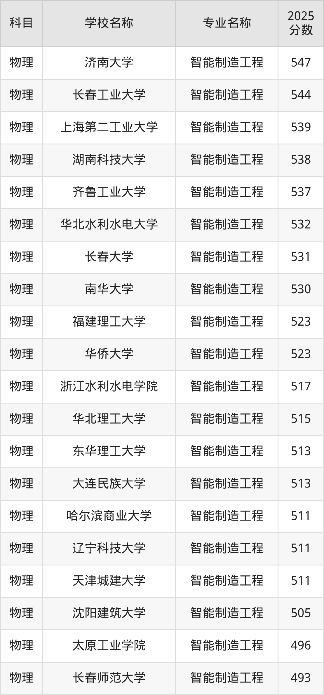 下文将为大家展示内蒙古自治区大学智能制造工程专业2025年在内蒙古高考的最低录取分数线!