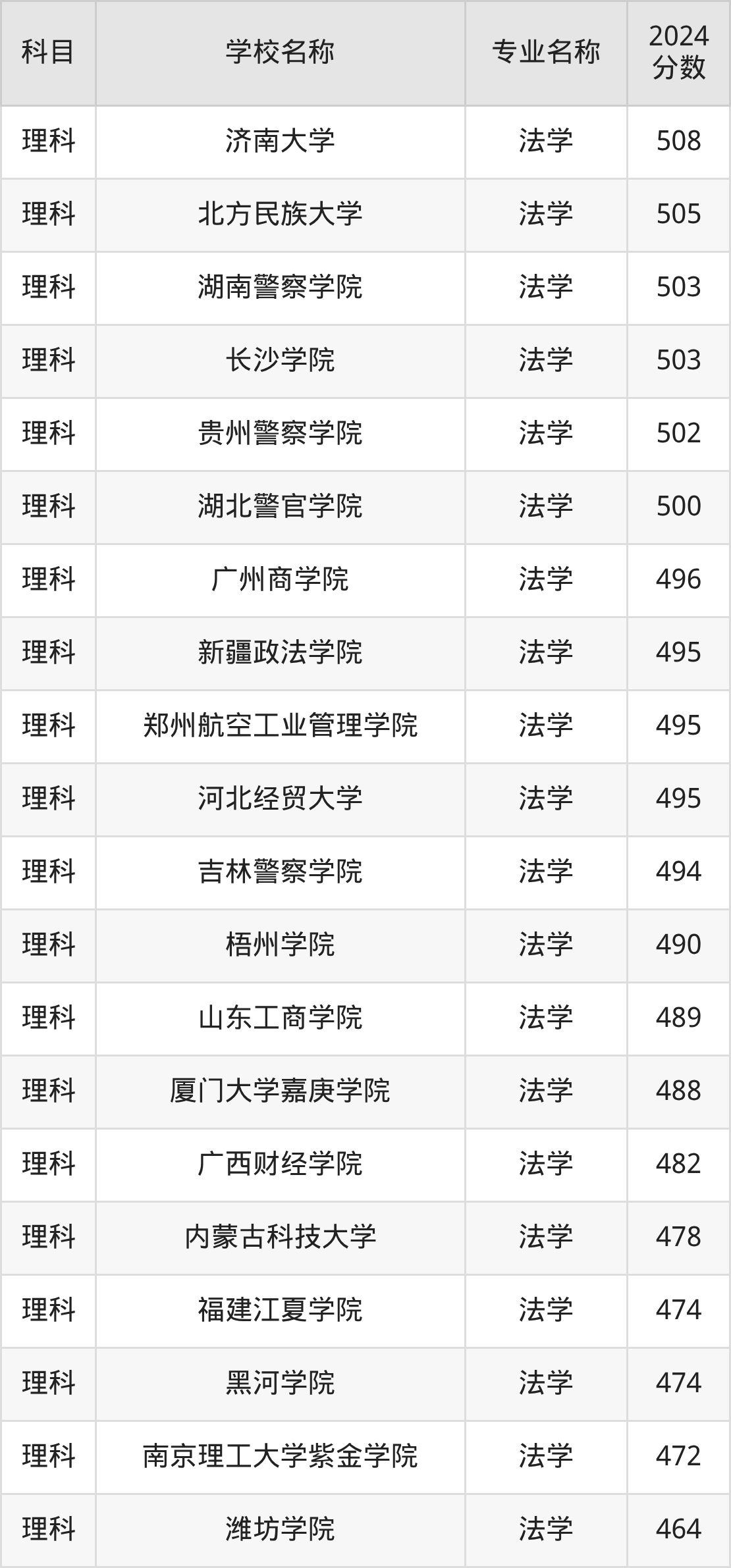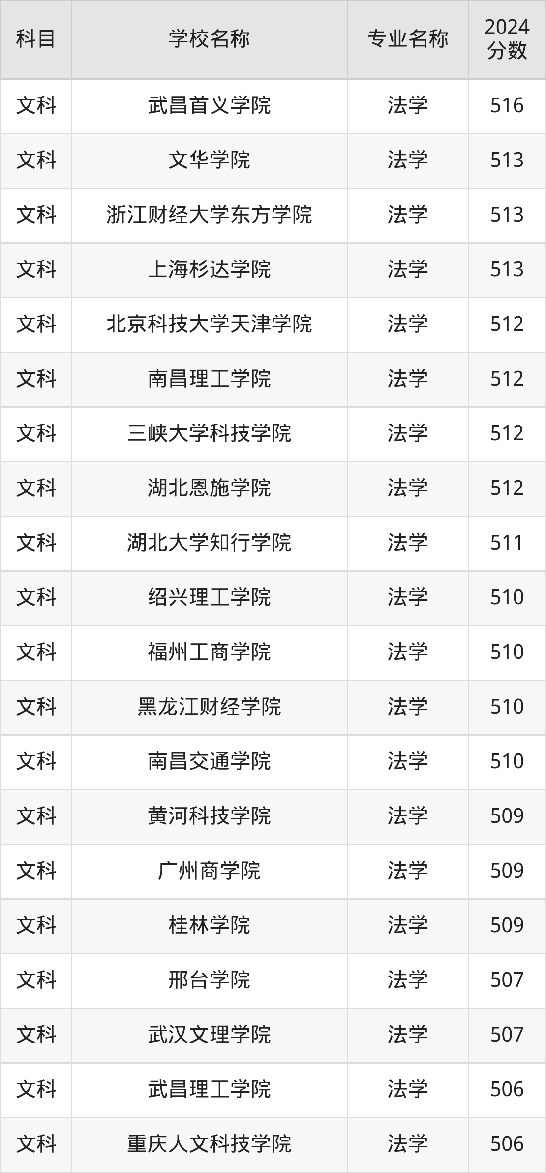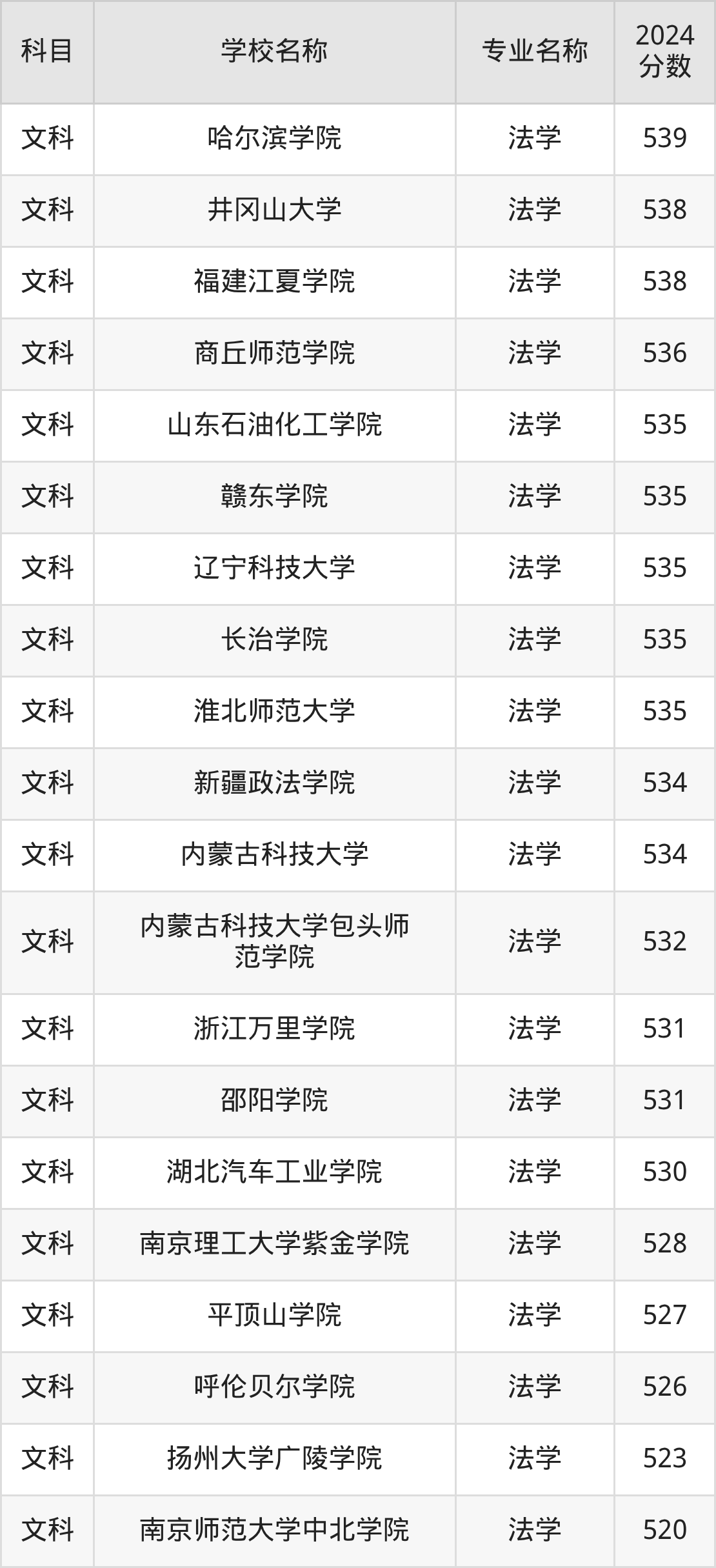| 昆明理工大学津桥学院 | 法学 | 501 |