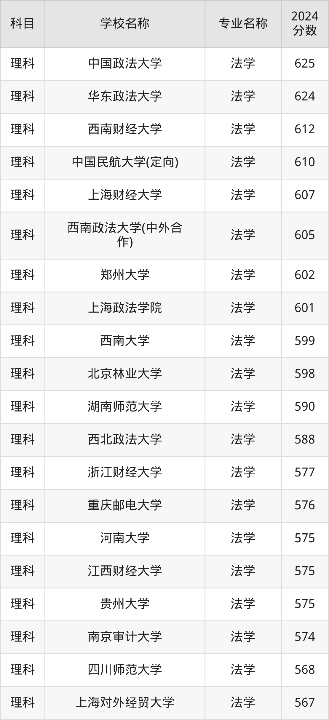| 西南林业大学 | 法学 | 557 |