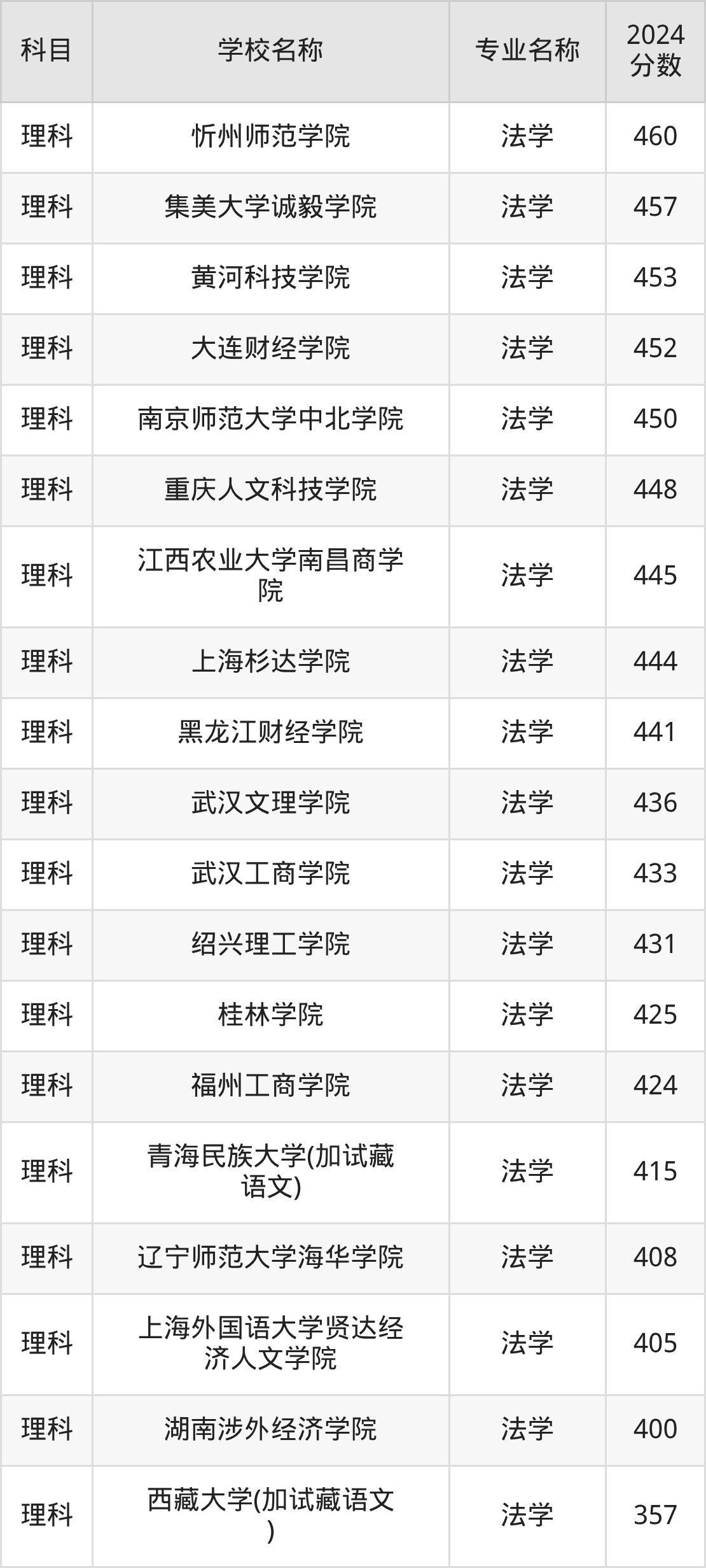 | 昆明城市学院 | 法学 | 480 |