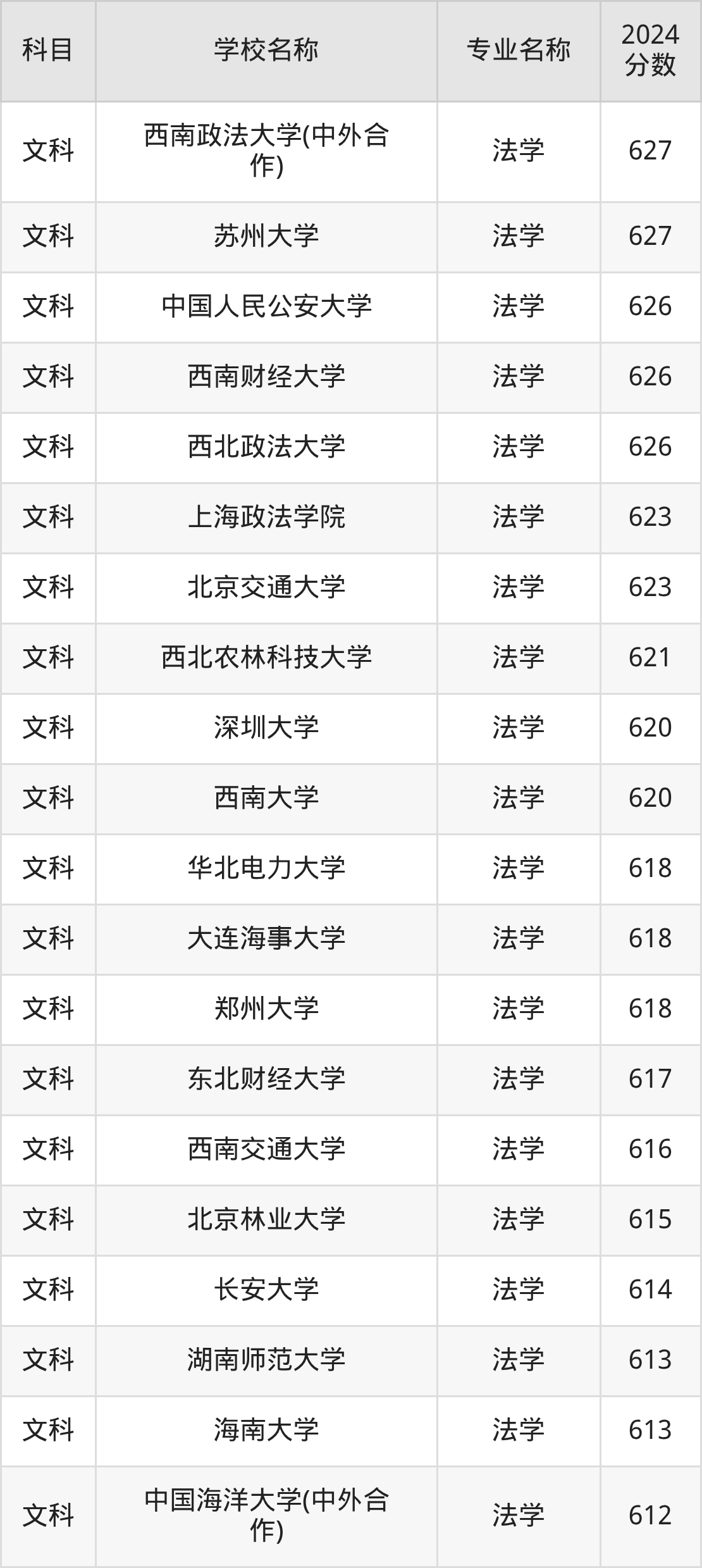 | 云南大学 | 法学 | 616 |