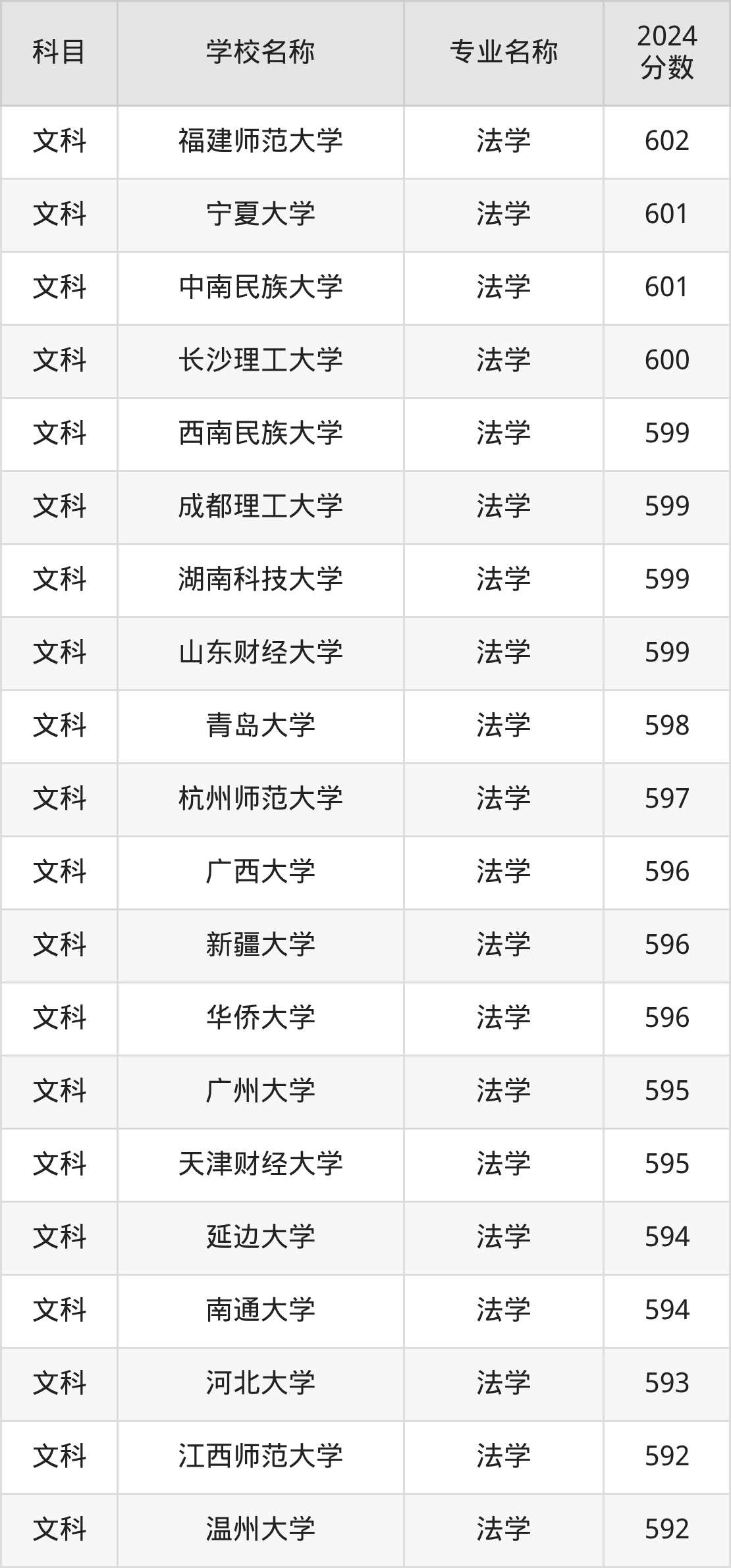 | 昆明理工大学 | 法学 | 597 |