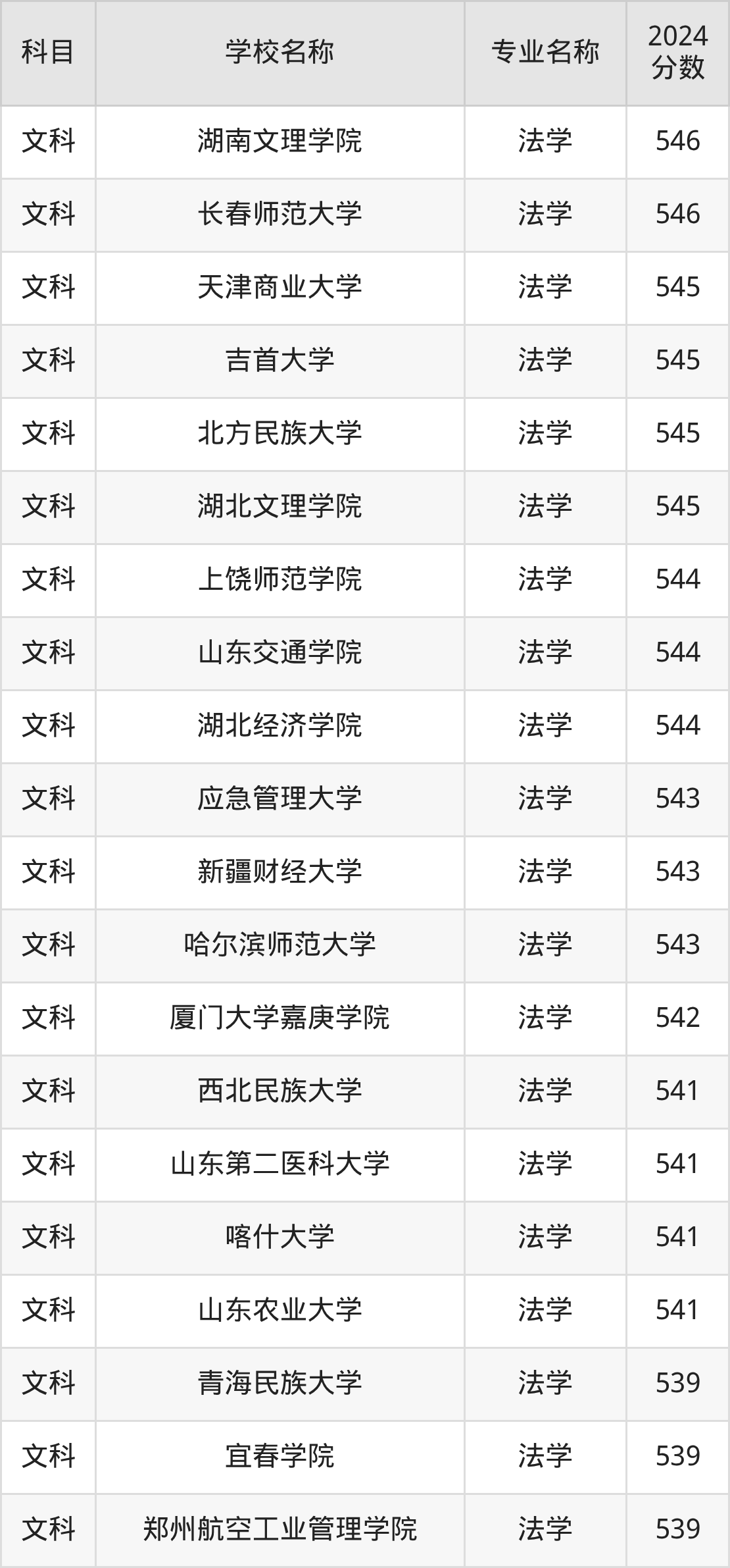 | 曲靖师范学院 | 法学 | 544 |