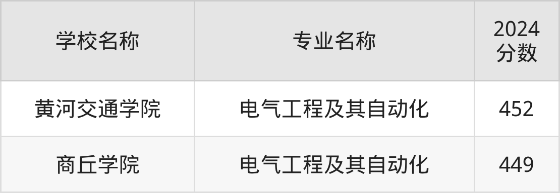 | 郑州工业应用技术学院 | 电气工程及其自 动化 | 450 |