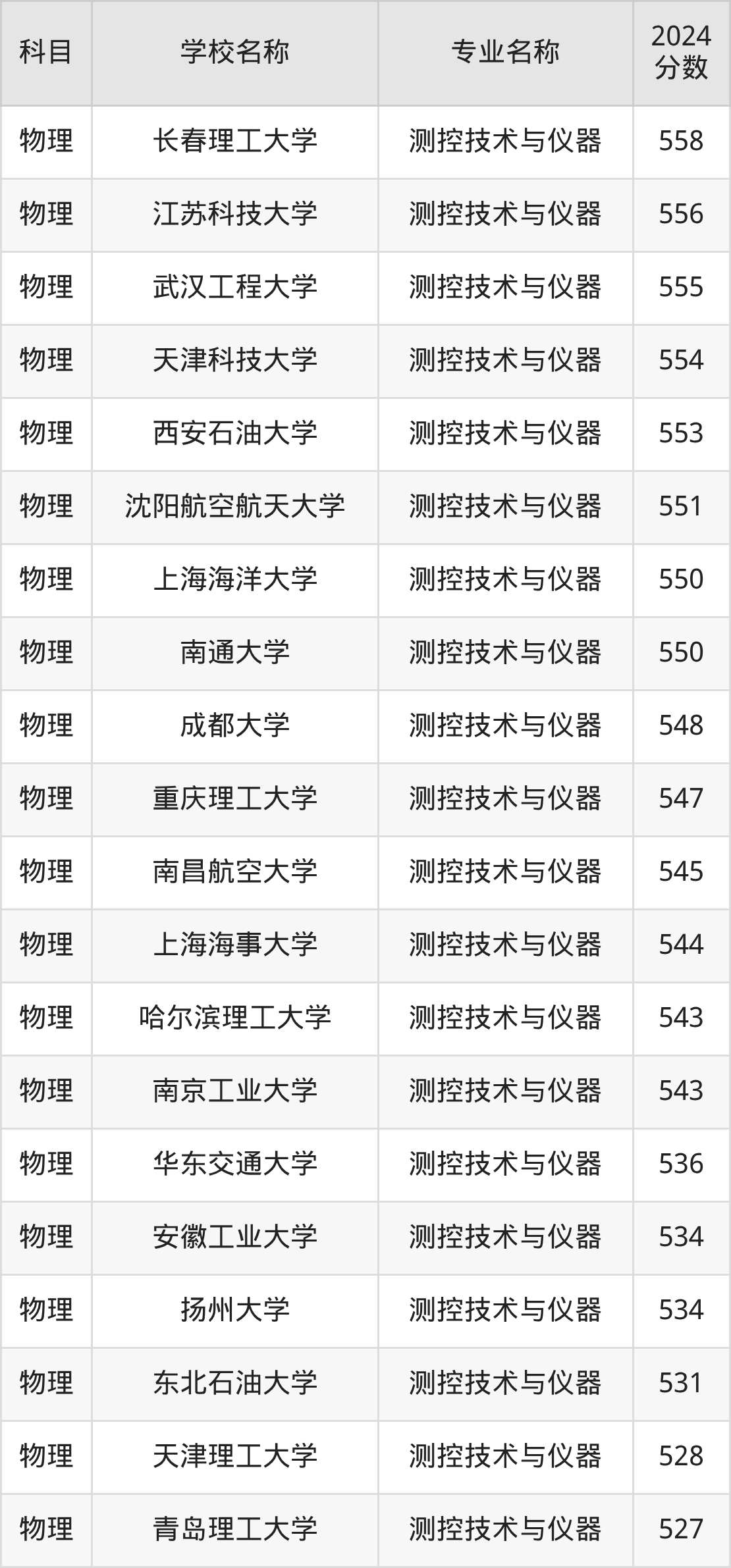 下文将为大家展示甘肃省大学测控技术与仪器专业2024年在甘肃高考的最低录取分数线!