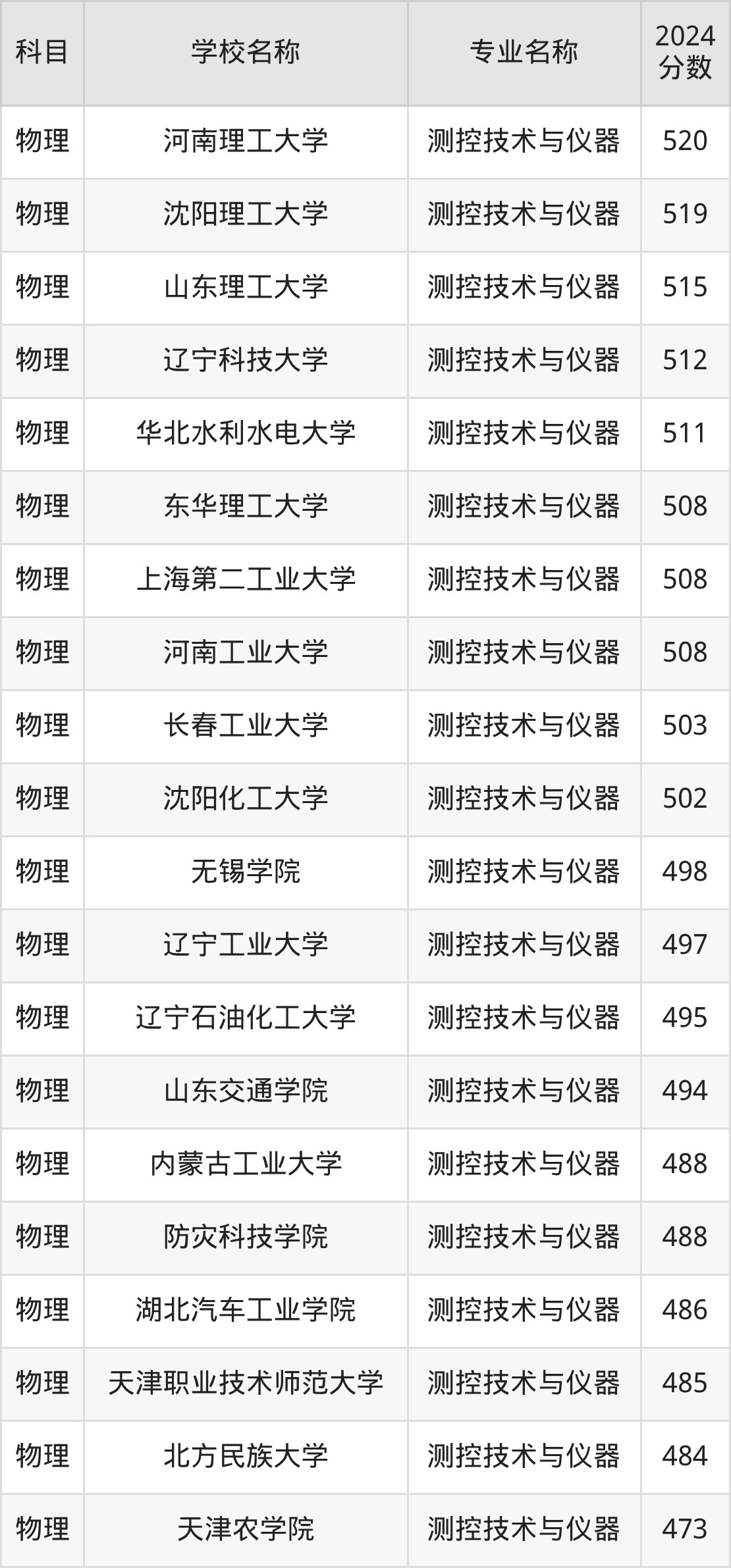 | 兰州理工大学 | 测控技术与仪器 | 515 |