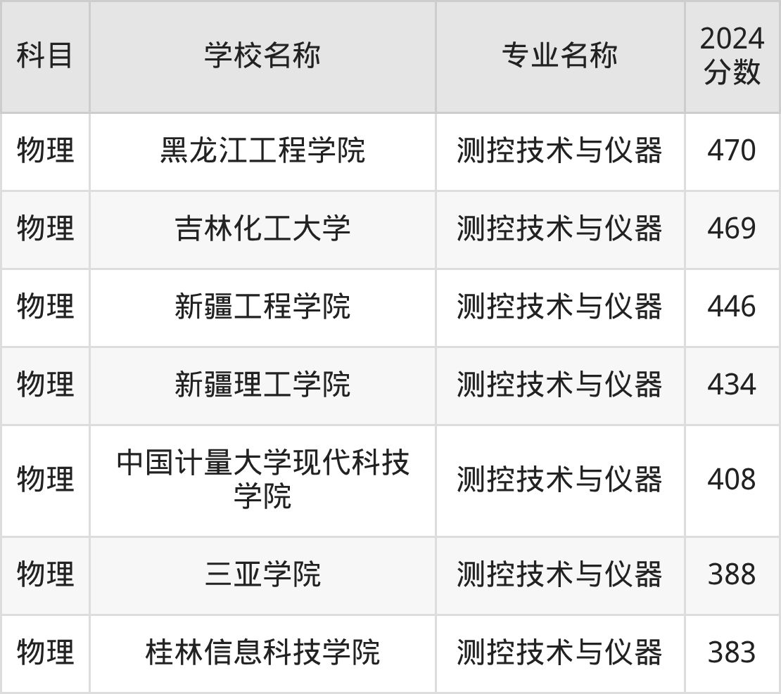 甘肃高考物理组:测控技术与仪器专业的最低分是374分~526分