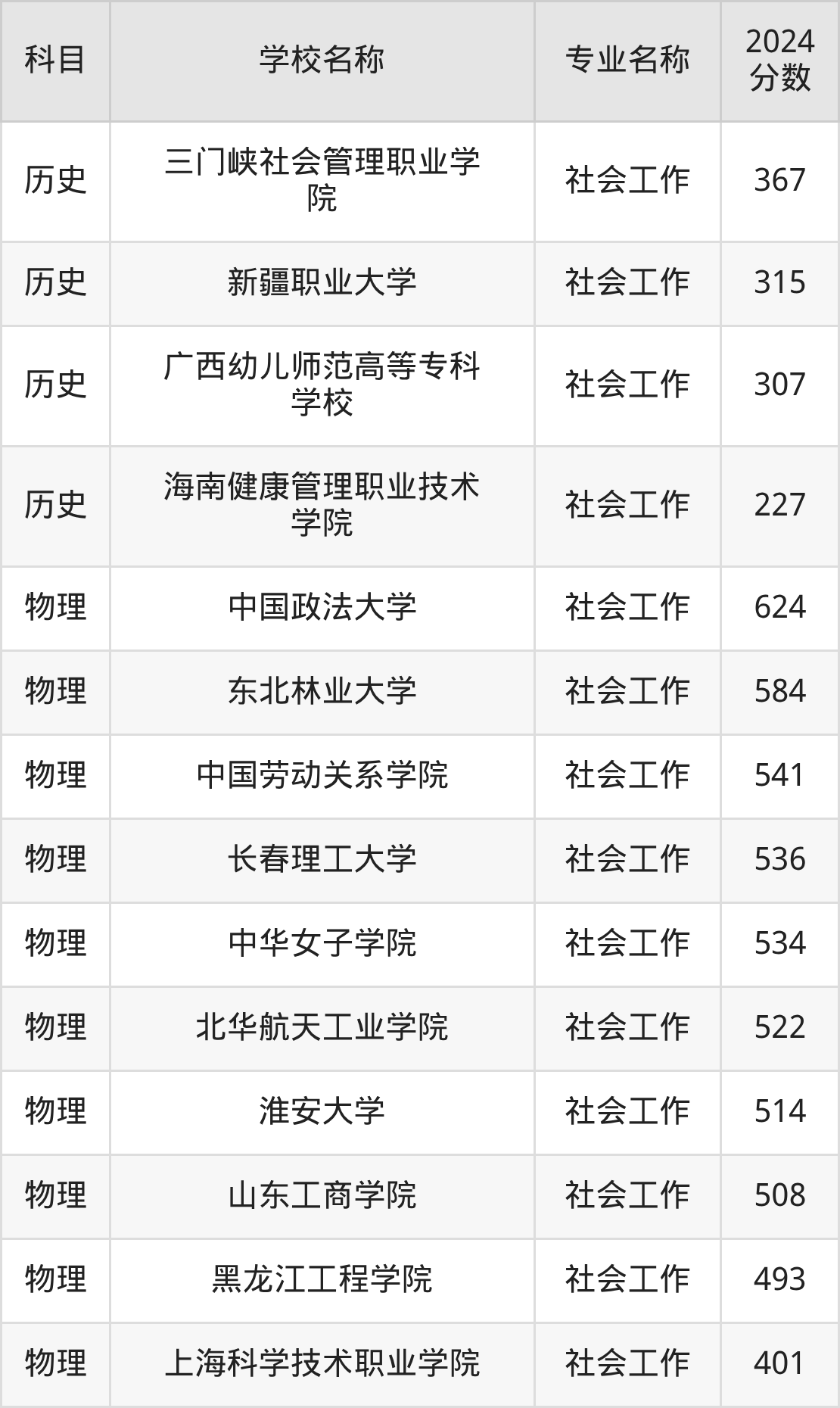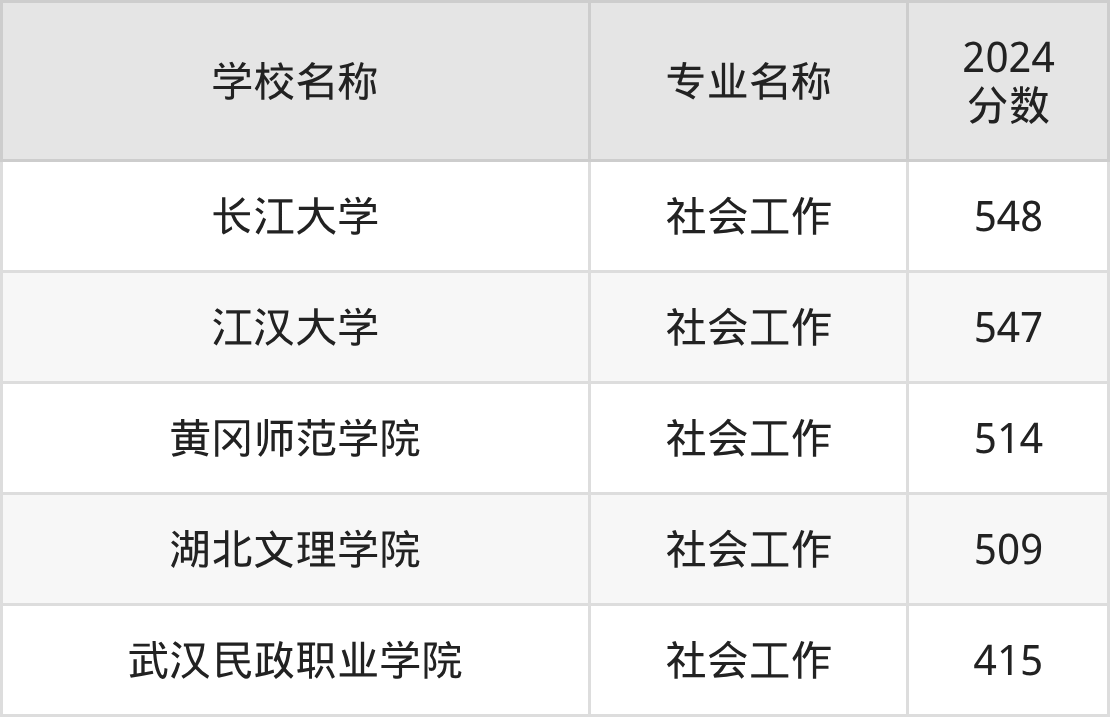 下文将为大家展示湖北省大学社会工作专业2024年在湖北高考的最低录取分数线!