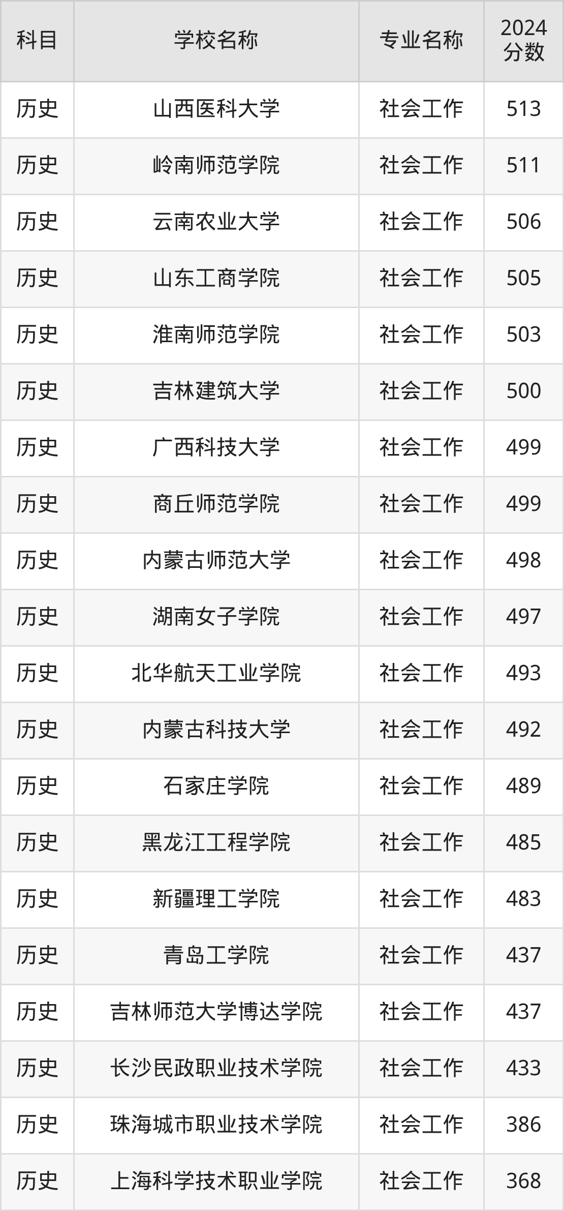 | 湖北文理学院 | 社会工作 | 506 |