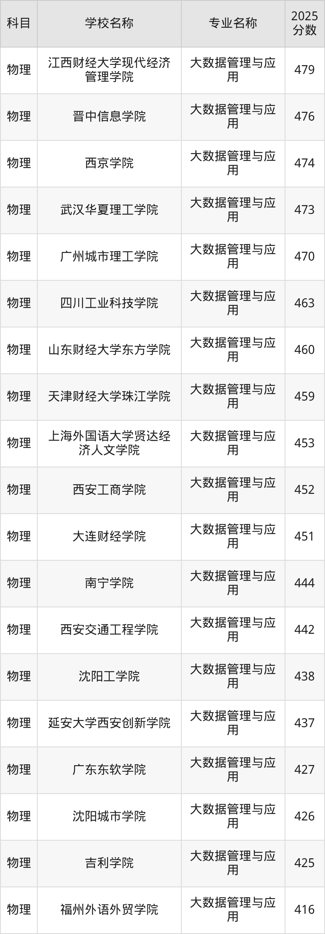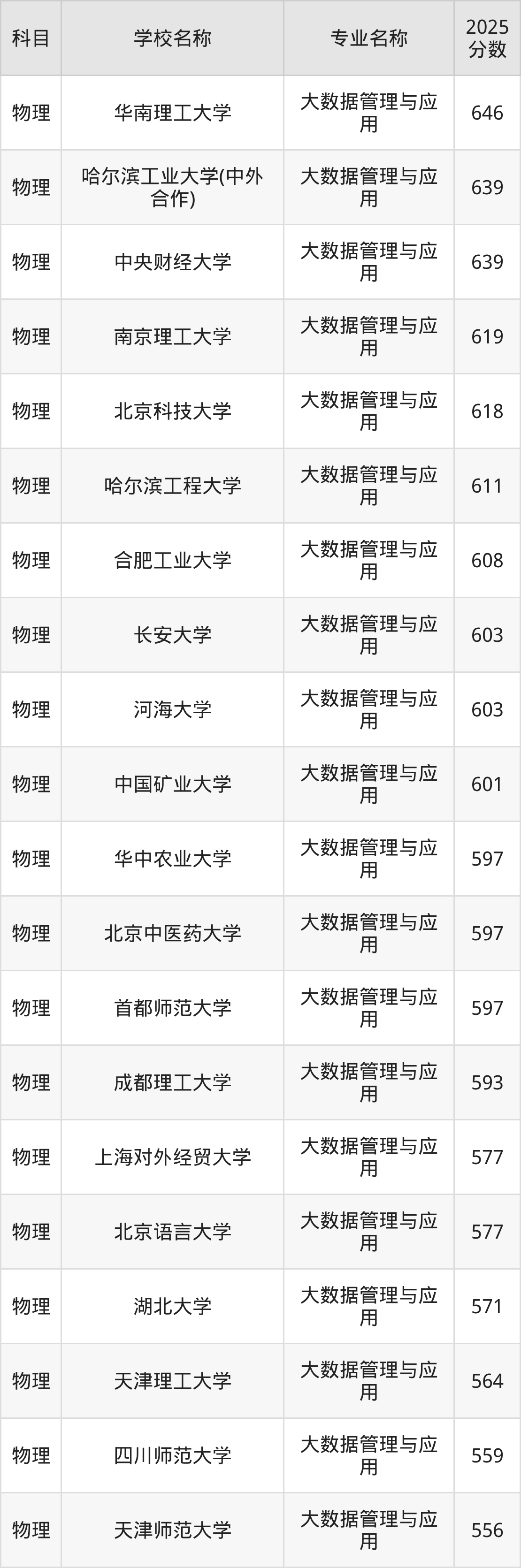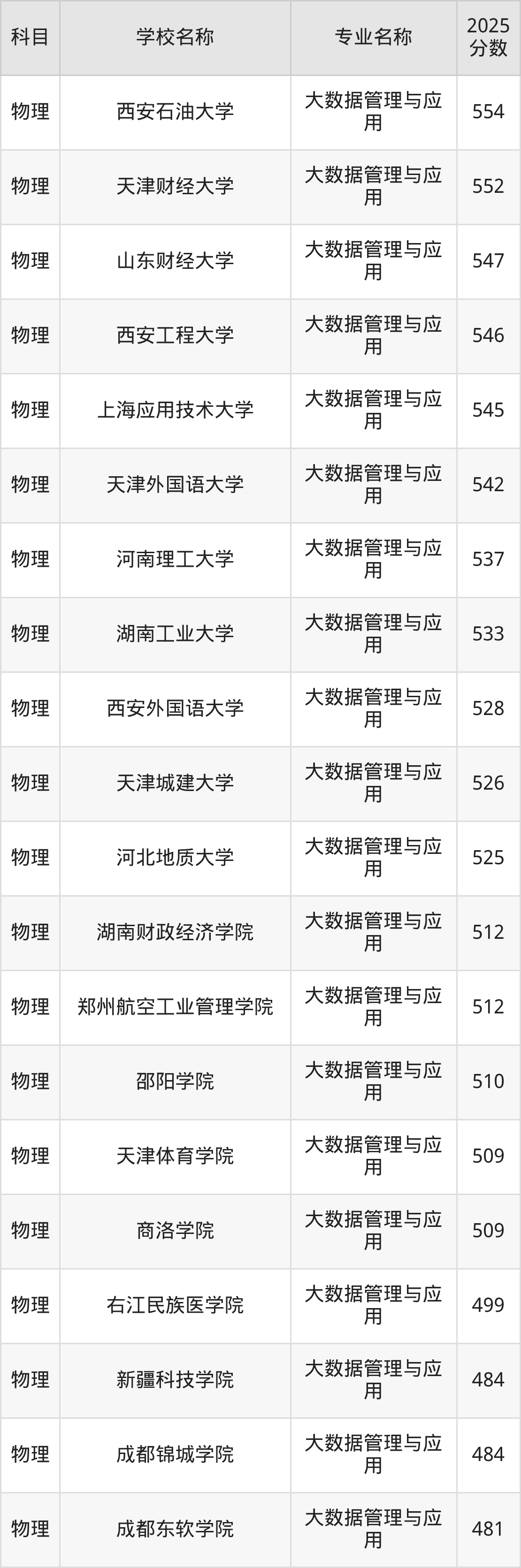 | 学校名称 | 专业名称 | 2025 分数 |