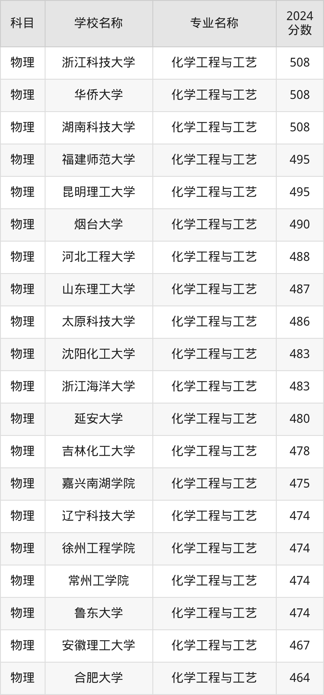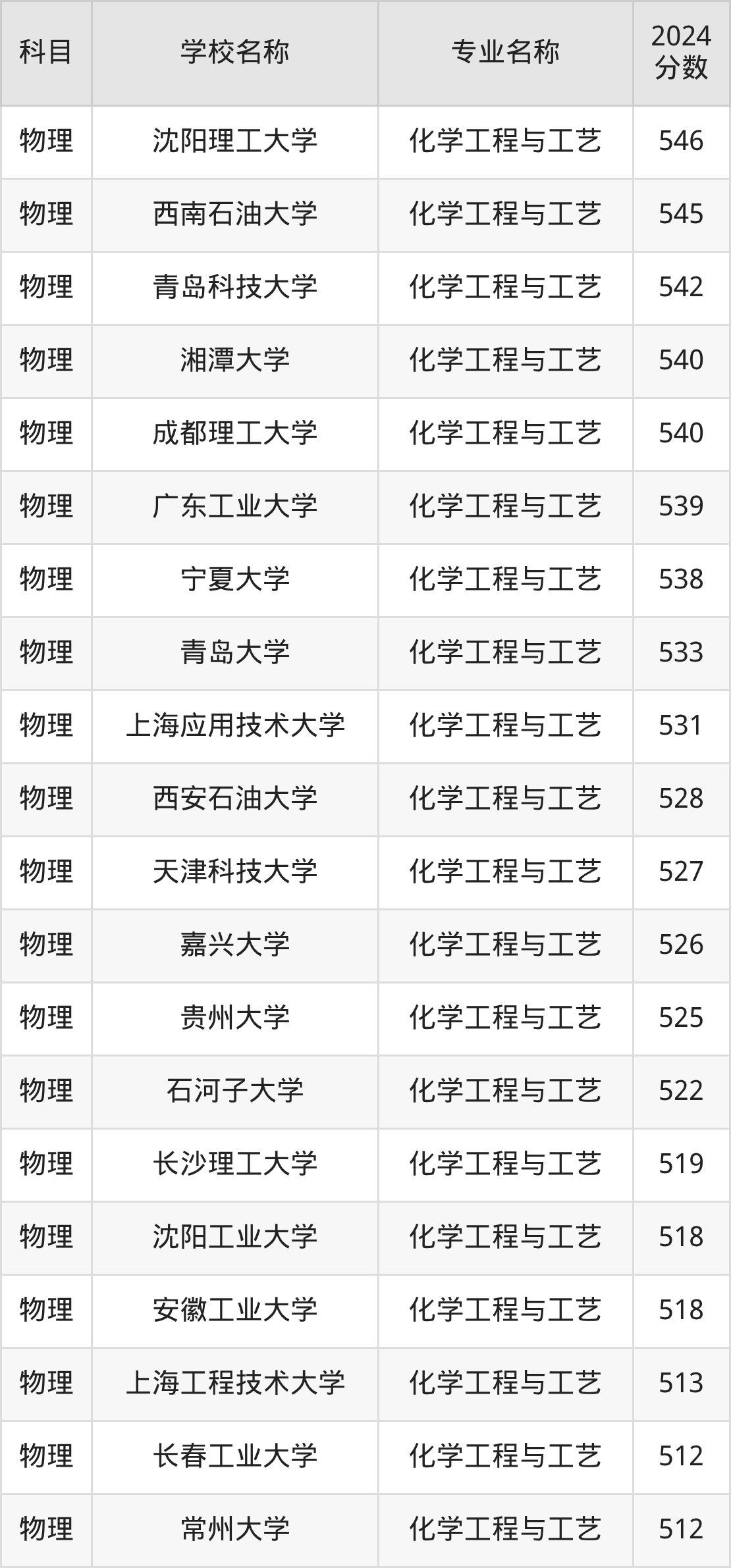 | 哈尔滨理工大学 | 化学工程与工艺 (地方专项) | 525 |