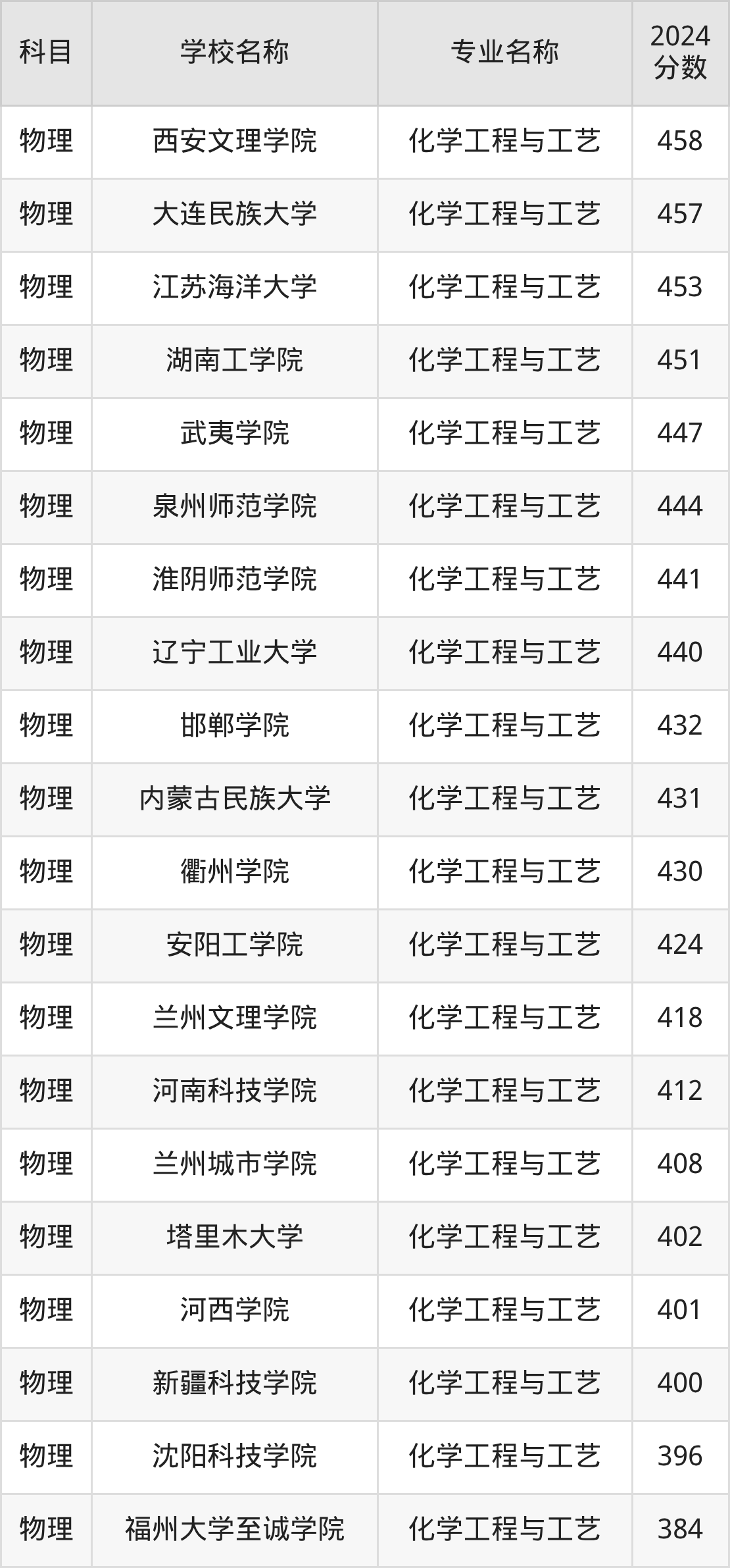 | 牡丹江师范学院(少数 民族预科) | 化学工程与工艺 (少数民族预科 班) | 399 |