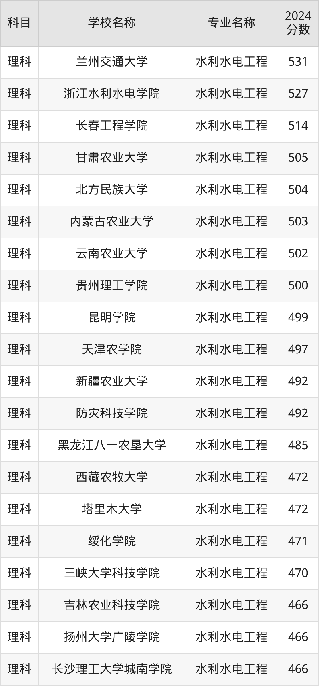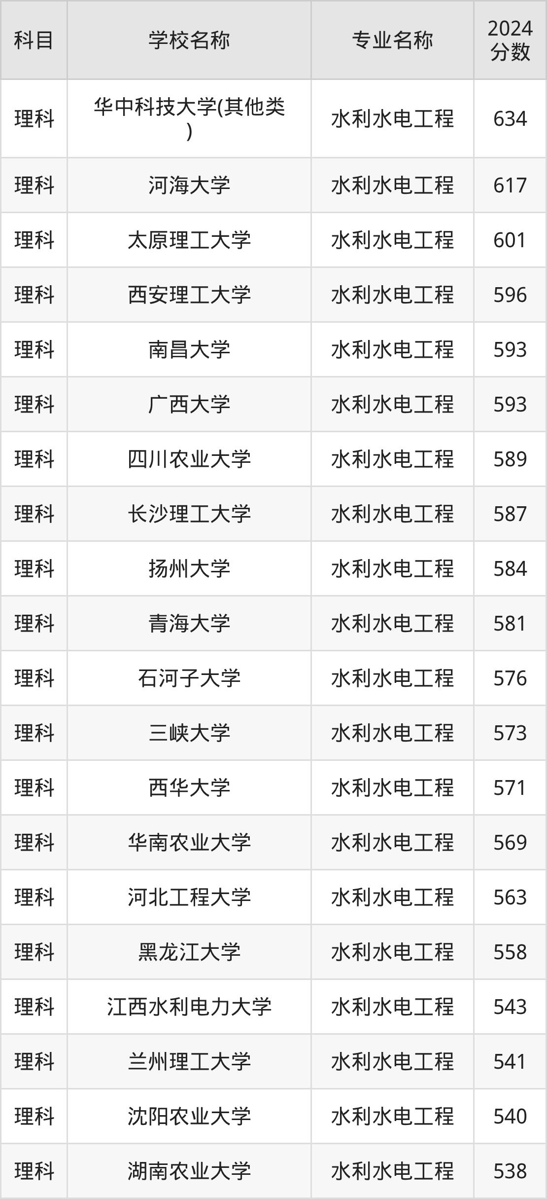 | 华北水利水电大学 | 水利水电工程 | 579 |