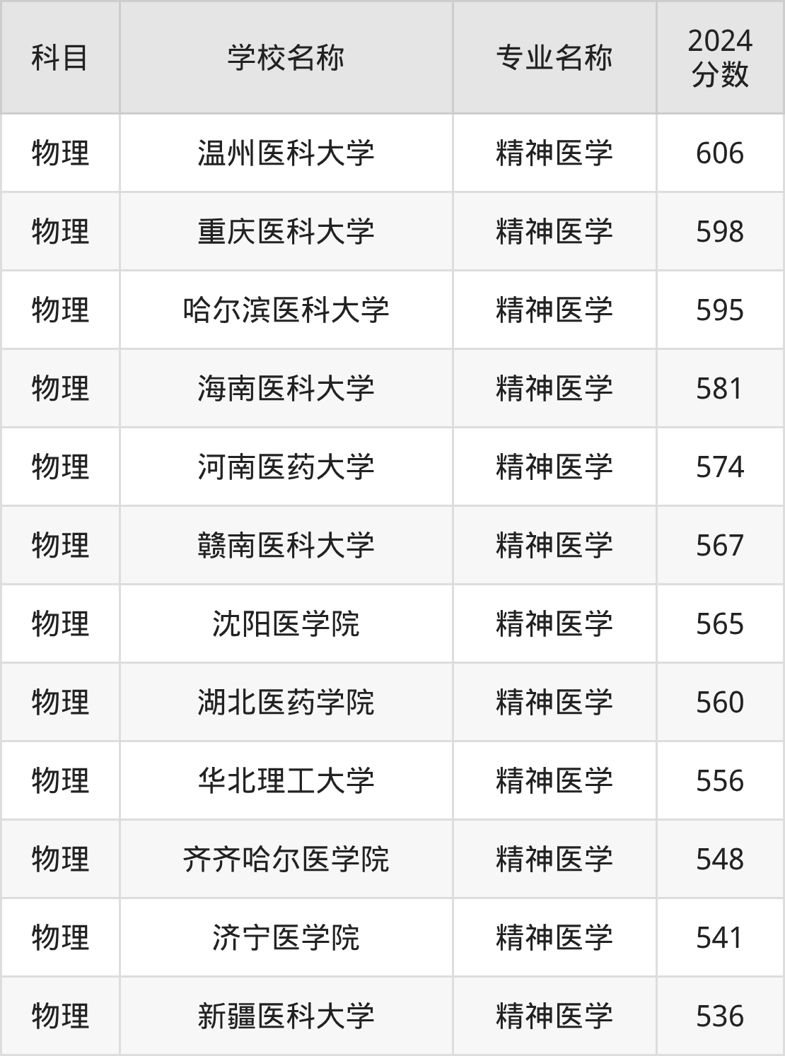 江苏高考物理组:精神医学专业的最低分是568分~607分